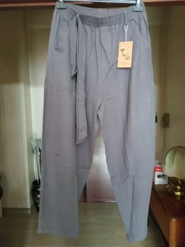 Pantalones de lino y algodón para hombre, pantalón de chándal holgado, informal, con cintura elástica, estilo chino tradicional, para verano