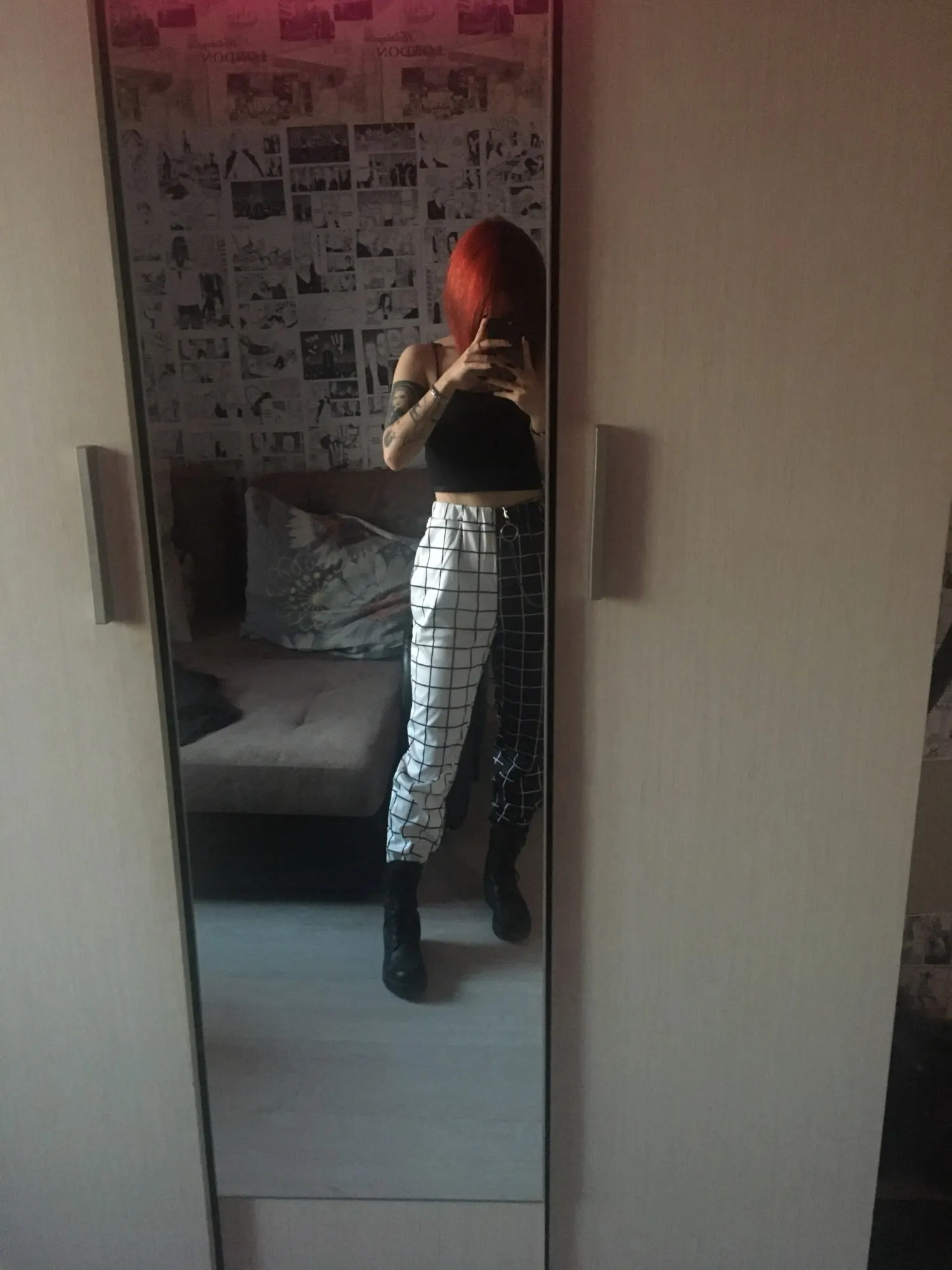 Pantalones largos rectos de cintura alta para chicas, ropa de calle, de retales, en blanco y negro, Cargo