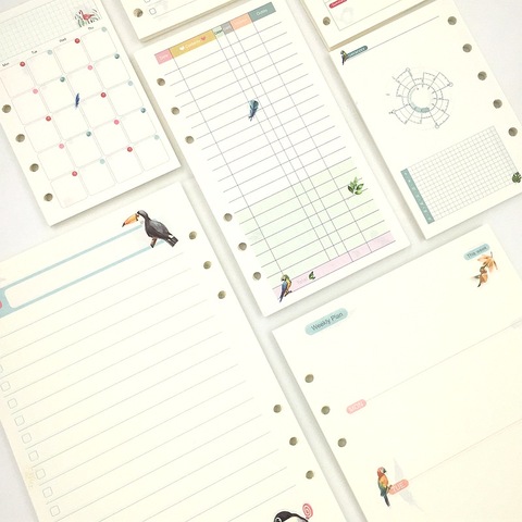 Papel de relleno A5, A6, A7, hoja suelta de 6 agujeros, papel interno colorido, lista mensual, línea de puntos, Papel kraft para libreta