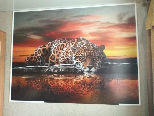 el vinilo perfecto tal cual se ve en la imagen, encajan muy bien xq al ser el vinilo grande vino en cuatro cachos pero ni se notan sin duda muy recomendable