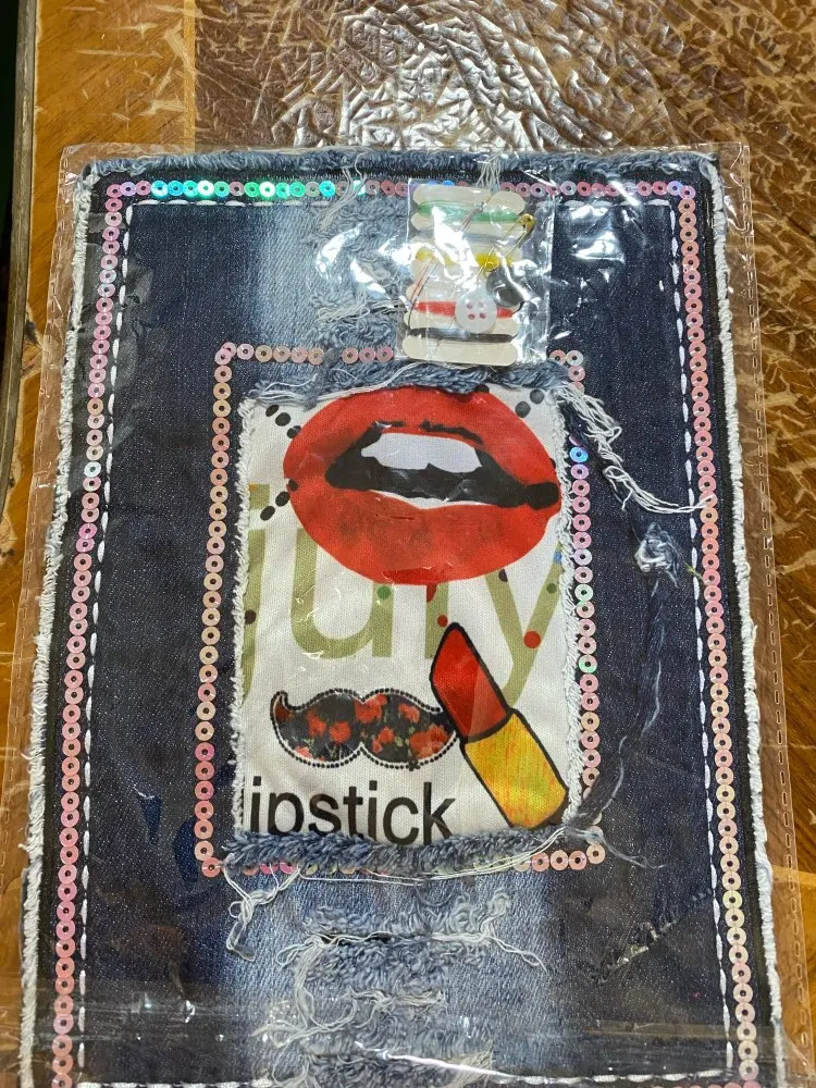 Parche para vaquero grande con lentejuelas y pintalabios para mujer, remera para mujer, parches de vaquero para ropa, pegatinas 3D