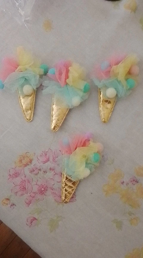 Parches de bola de chifón de malla de colores, apliques de helado para ropa artesanal, zapatos, sombreros, pinzas para el pelo, accesorios de decoración, P66, 4 Uds.