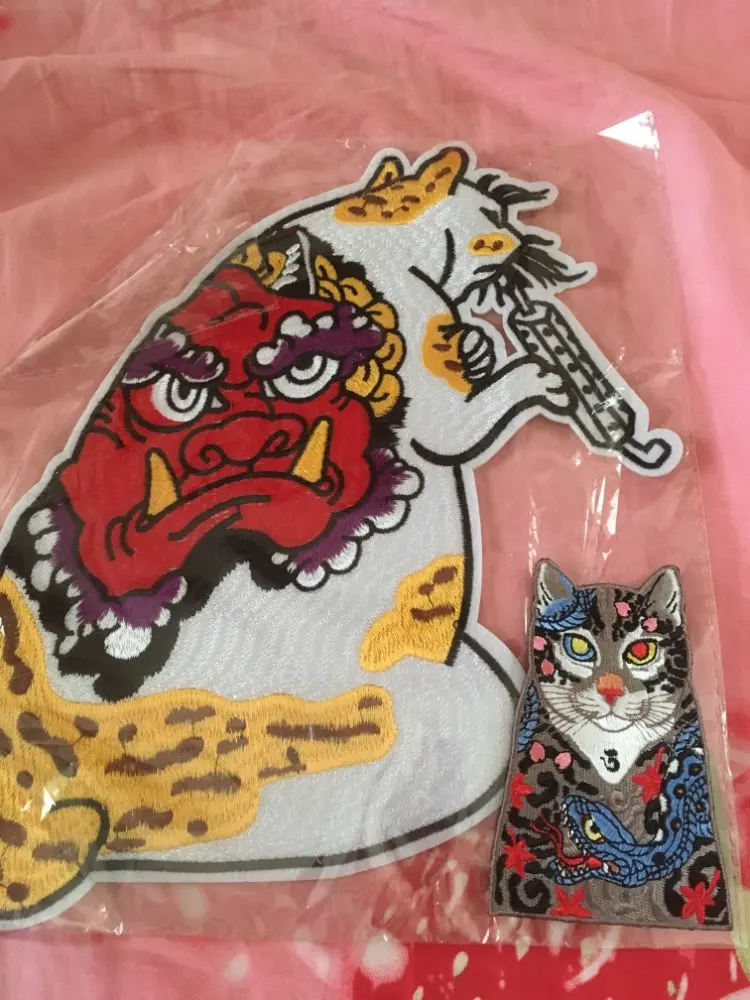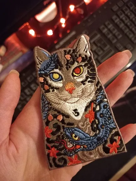 Parches de Embird parche bordado gato Monmon gatos y serpiente tatuaje hecho a mano parches 3D para niñas chaquetas parche