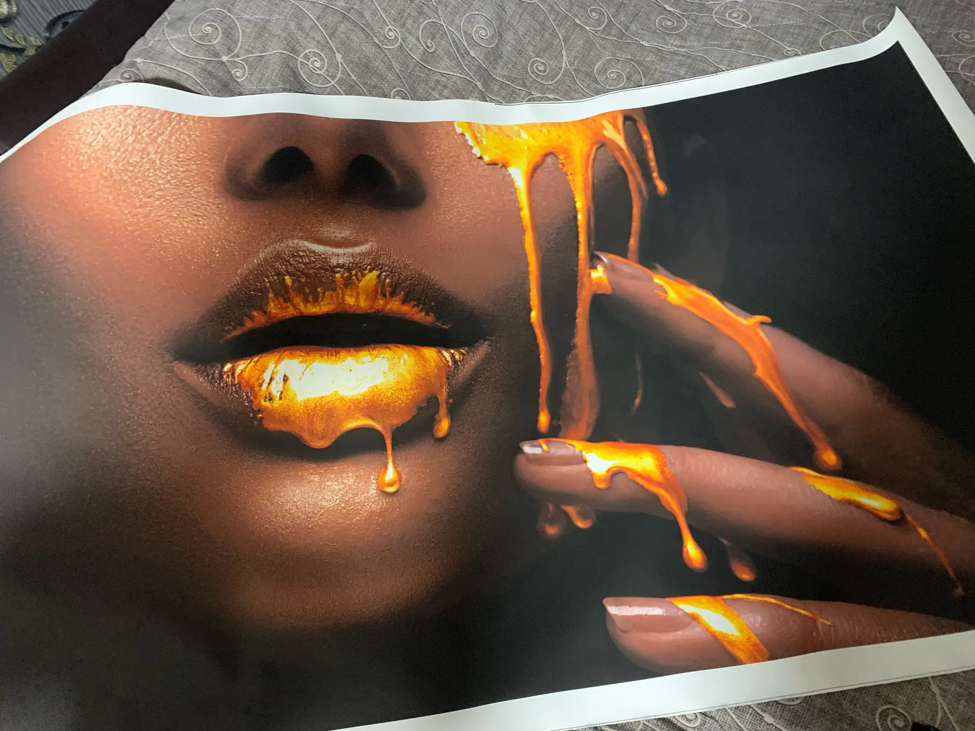 Pared grande imágenes artísticas para la sala de las mujeres con oro líquido lienzo impreso pinturas casa moderna decoración carteles Cuadros