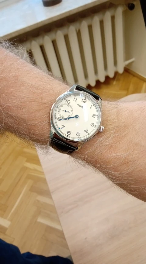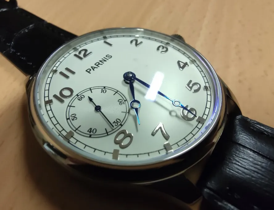 Parnis-reloj mecánico Manual para hombre, pulsera de 44mm, con esfera blanca, 17 joyas, cuerda Manual, de movimiento informal, 6497