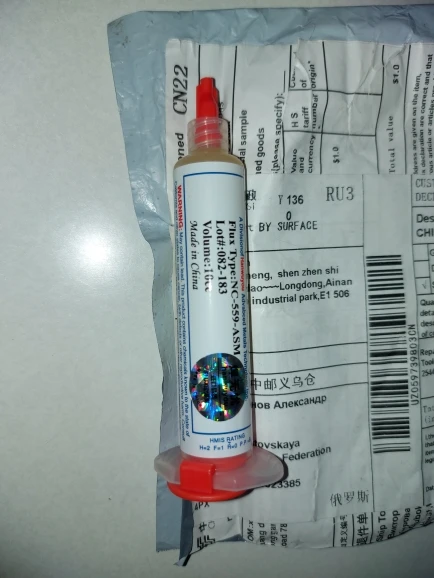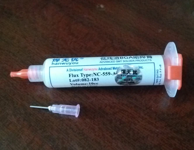 Pasta de flujo de soldadura, pasta de flujo de NC-559-ASM-UV de 10cc, sin plomo, flujo de soldadura + agujas, 559