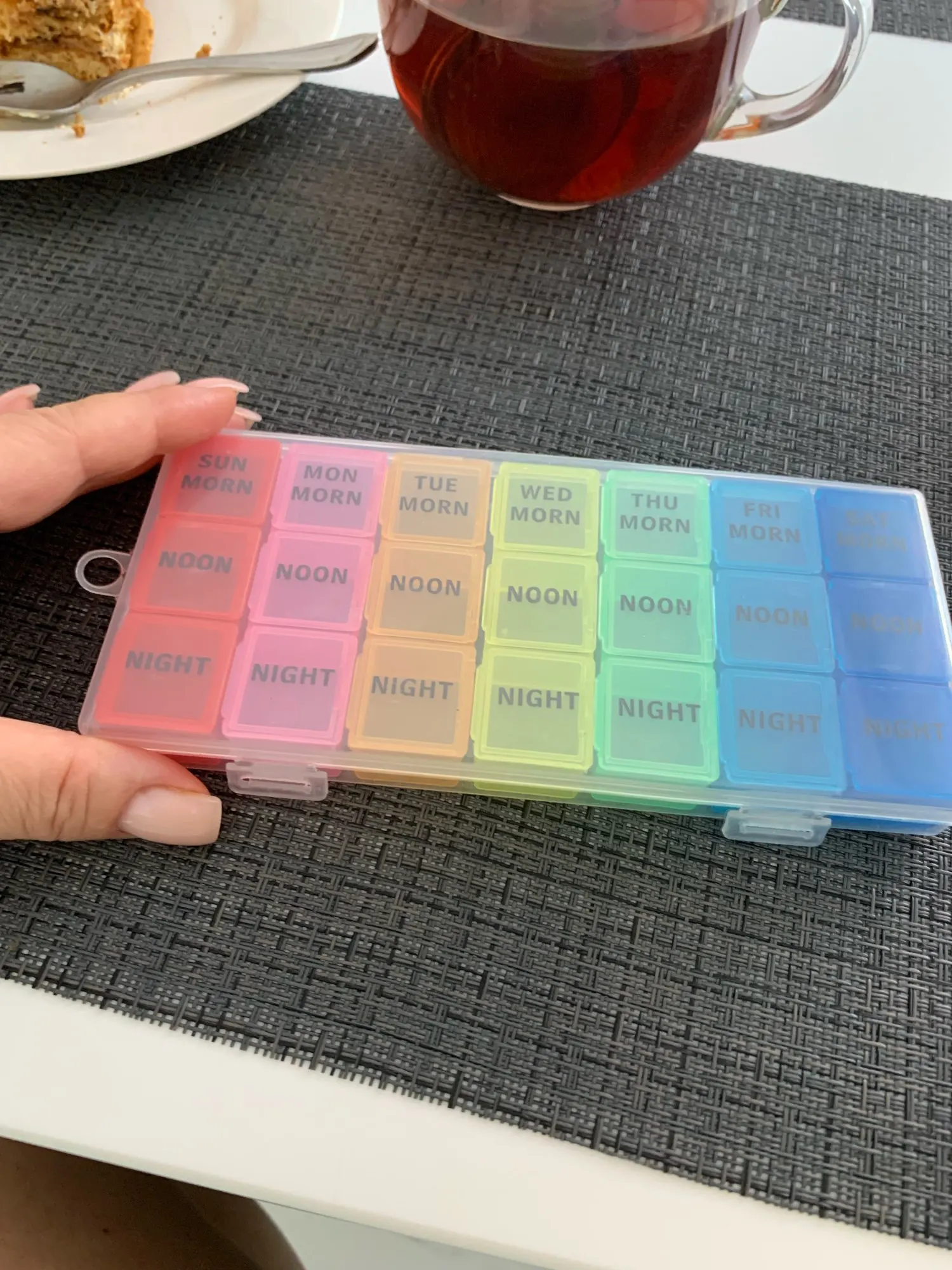 Pastillero semanal de 7 días, 21 compartimentos, organizador de píldoras, dispensador de almacenamiento de medicamentos de plástico, cortador organizador estuche de medicina mensual