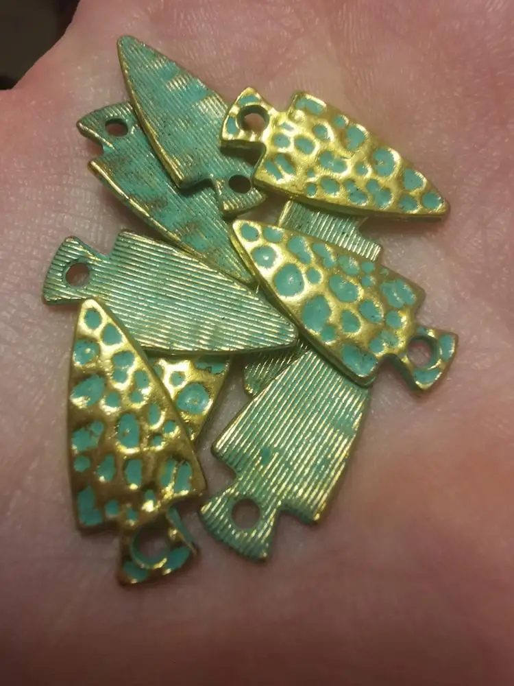 Pátina plateada Retro de 21MM, colgante de aleación de Zinc en forma de triángulo verde, colgantes de dientes para DIY, accesorios de joyería PJ012, 20 Uds.