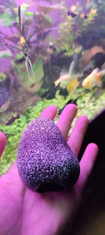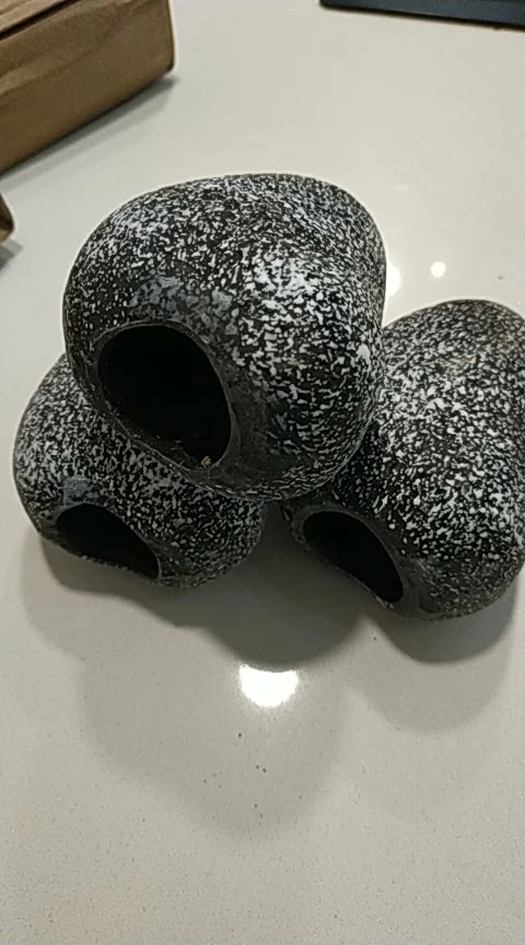 Envío rápido y bien embalado. Se aprecia un material poroso parecido al ladrillo. A mi me ha gustado mucho y queda muy bien, perfecta cueva para la cría del ramirezi.todo recomendado