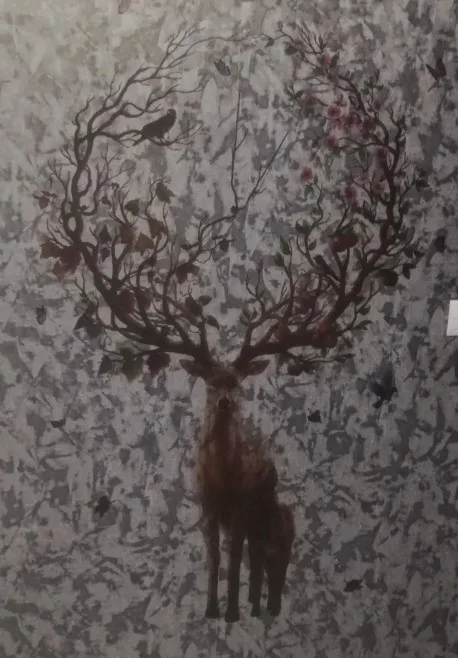 Pegatina de pared de fondo de sala de estar, arte Mural de calcomanías para decoración del hogar, póster de renos, flor grande, ciervo, bricolaje