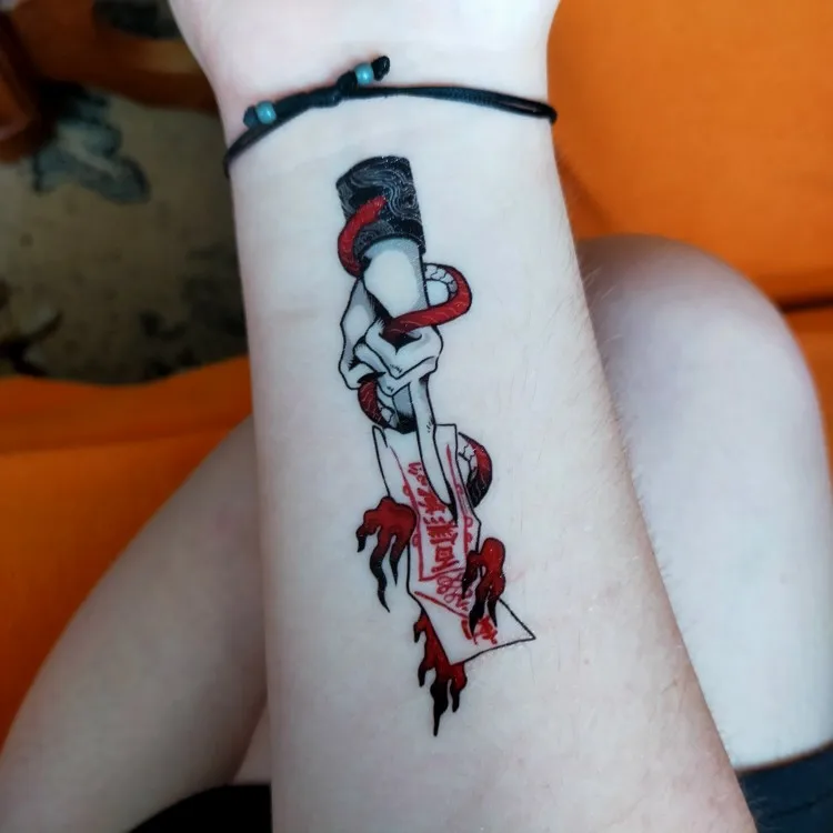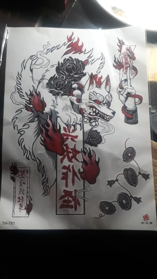 Pegatina de tatuaje temporal a prueba de agua para hombre y mujer, tatuaje Flash de zorro de Escuela antigua, Ojos de gato, Calavera, arte corporal, Tatuaje falso de brazo