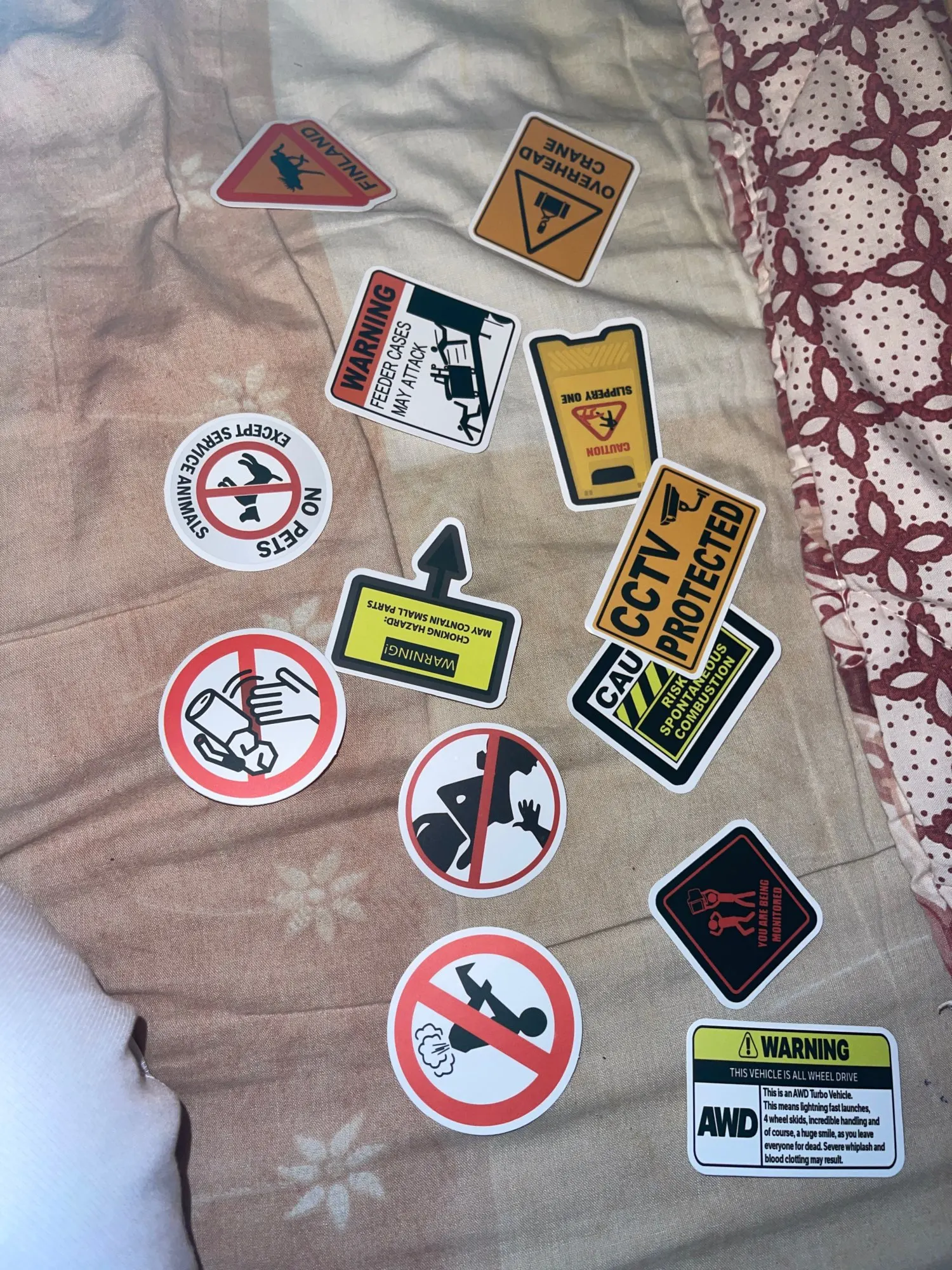 Pegatinas de advertencia de 50 Uds., pegatinas impermeables con recordatorio de señal de advertencia, para equipaje de motocicleta, Snowboard y portátil