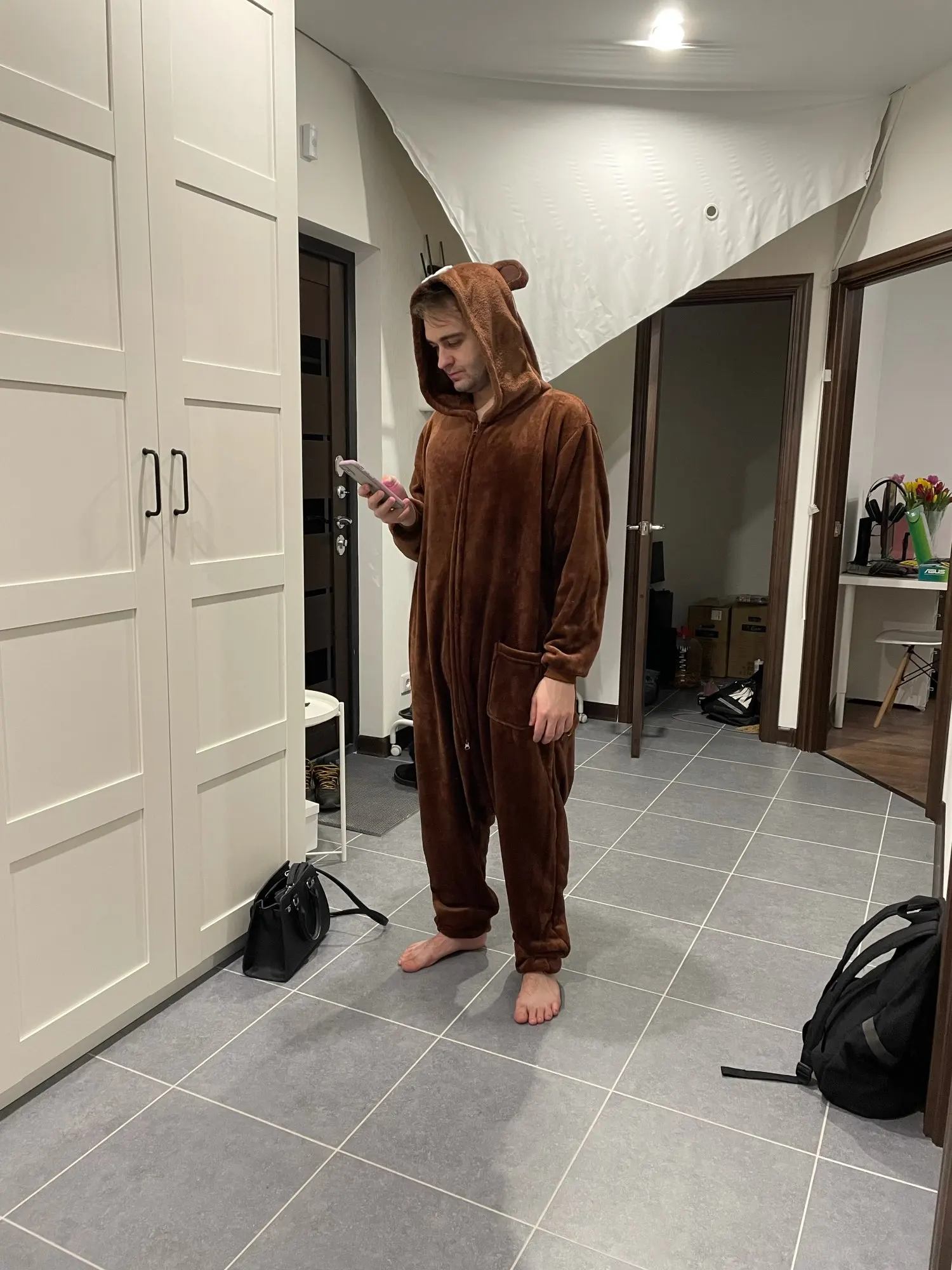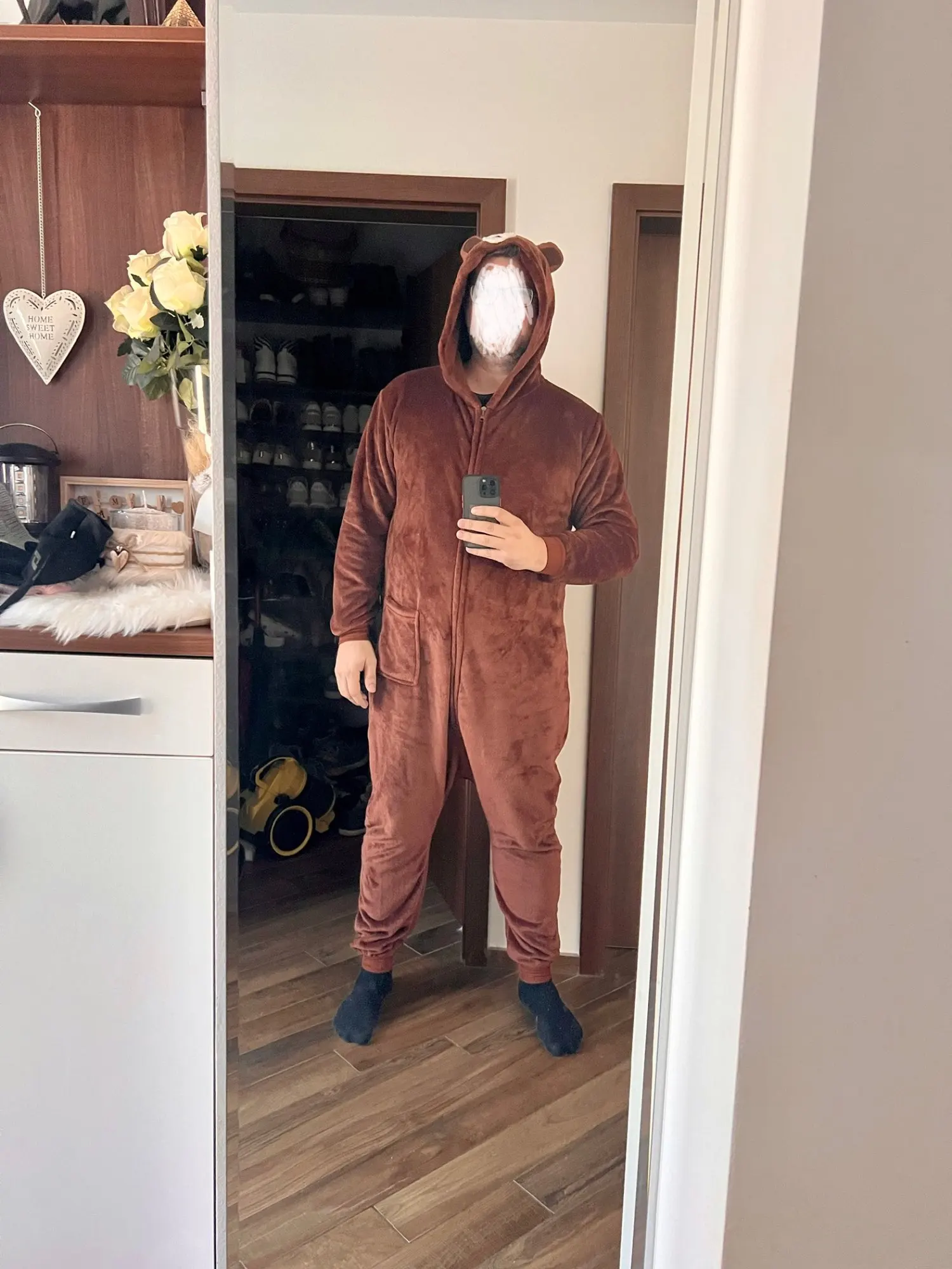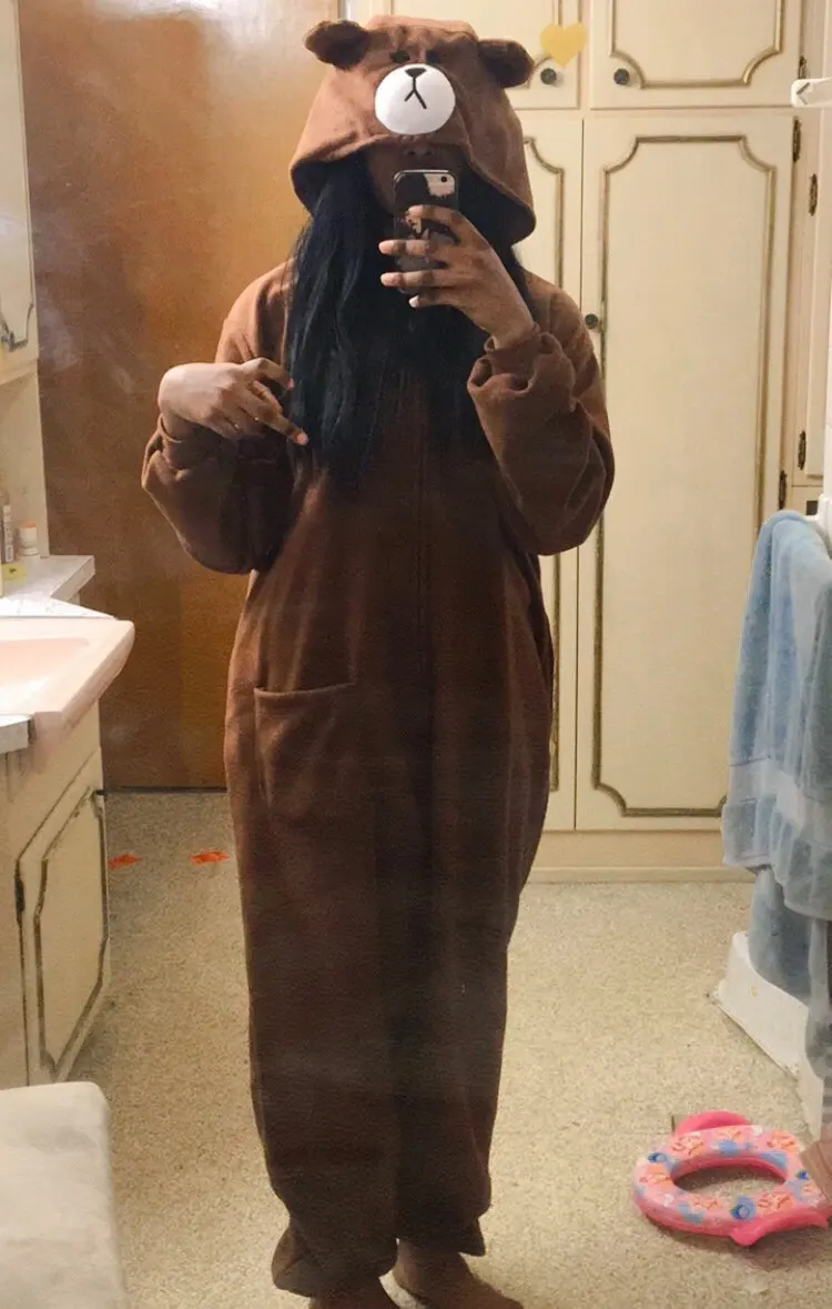 Pelele de oso para hombre y mujer, pijama de Animal kigurumi, zapatillas de dibujos animados, ropa de casa para Festival, traje cálido de invierno, monos con botones y cremallera