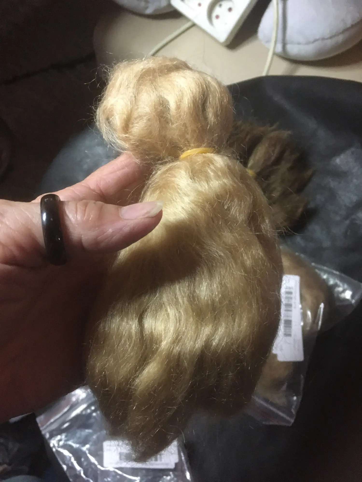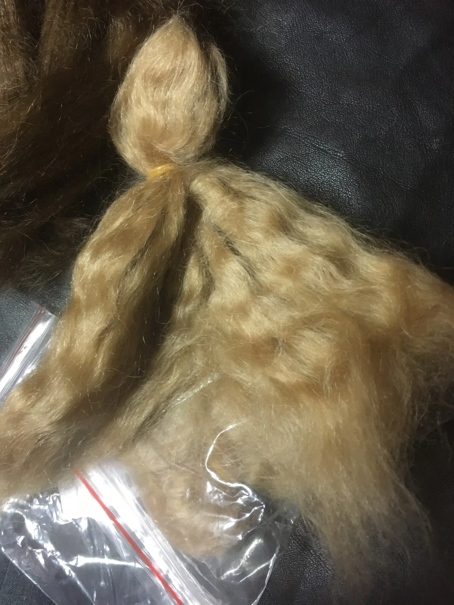 Envío 19 días a España, el mohair está muy bien suave y el color muy bonito cuando lo injertas queda un rubio natural y clarito y los gramos se aproximan a los 15 en otros sitios entran siempre muchos menos y el precio está muy bien, y viene en una bolsita de plástico