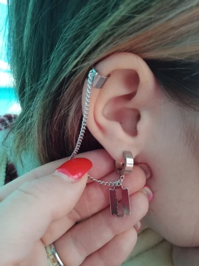 Pendiente de acero inoxidable para hombre y mujer, cadena para las orejas con llave, colgante de hoja con cierre, Clip para orejas, regalos de joyería