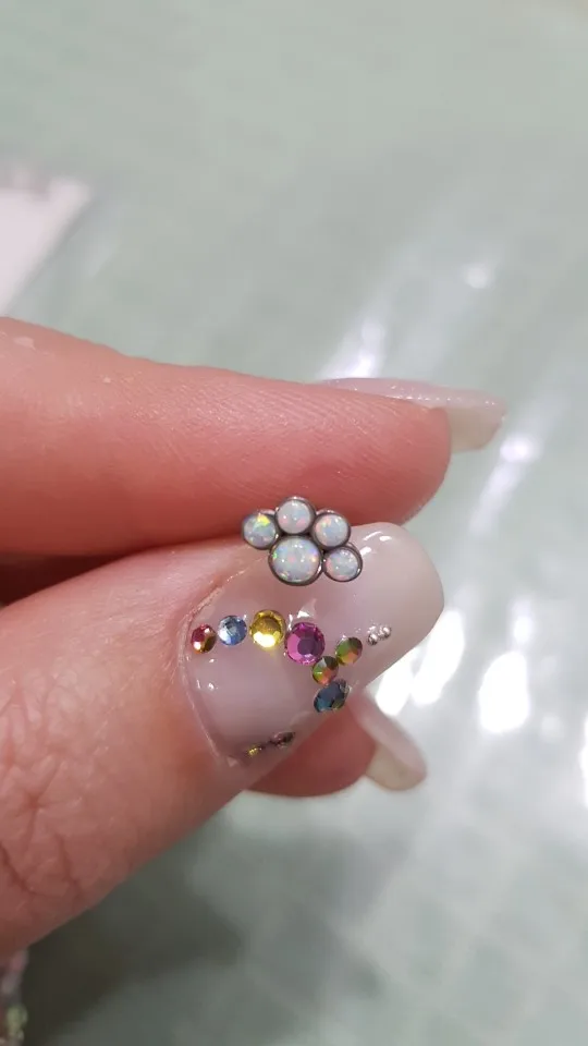 Pendiente de titanio y acero G23 con rosca interna de oso, pata de ópalo, GEMA de Circonia cúbica, flor, trago del oído, cartílago de hélice, pendiente de labio, barra de Labret, 1 ud.