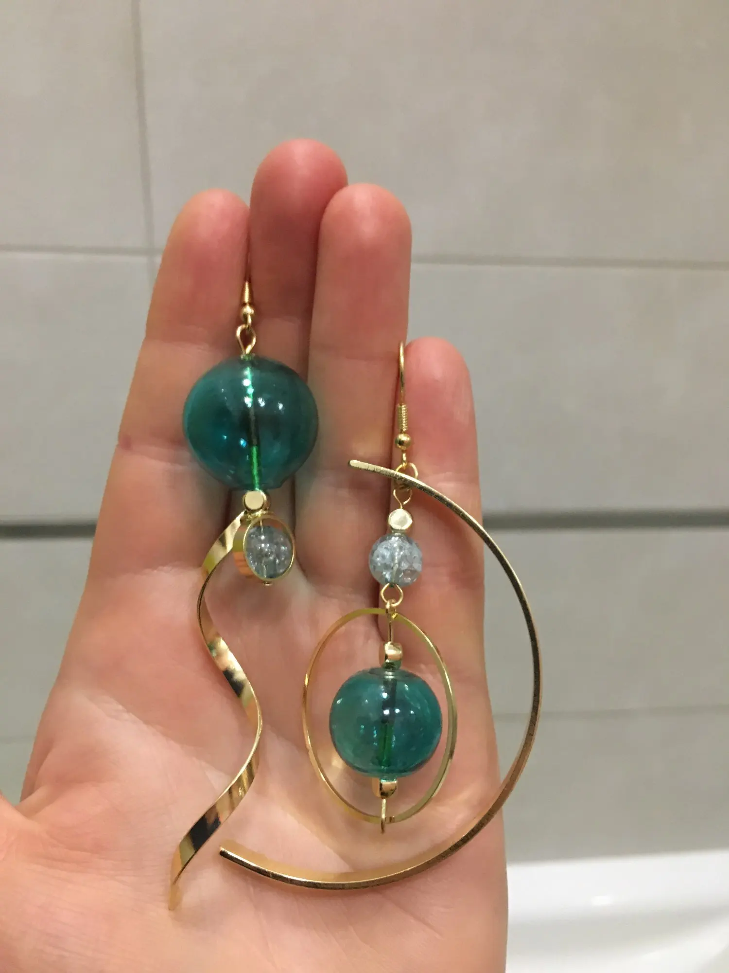 Pendientes colgantes de burbujas verdes frescas para mujer, 2022 Original, bola de cristal soplado a mano, pendientes de gota asimétricos, pendientes coreanos para mujer