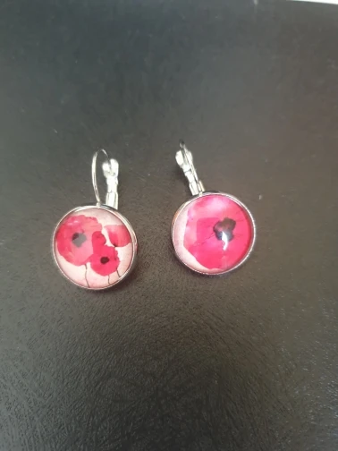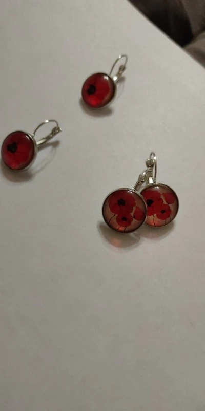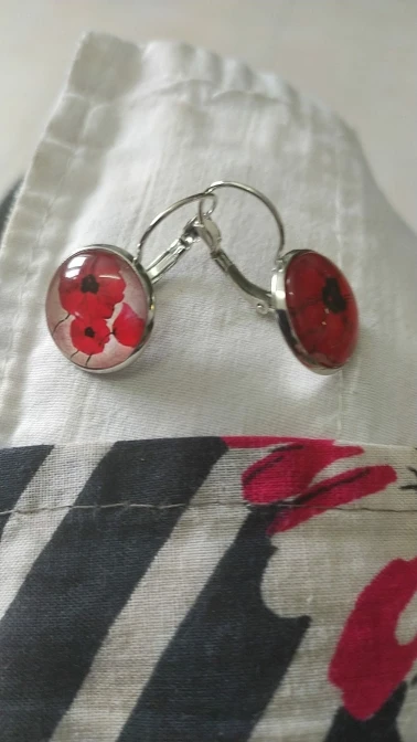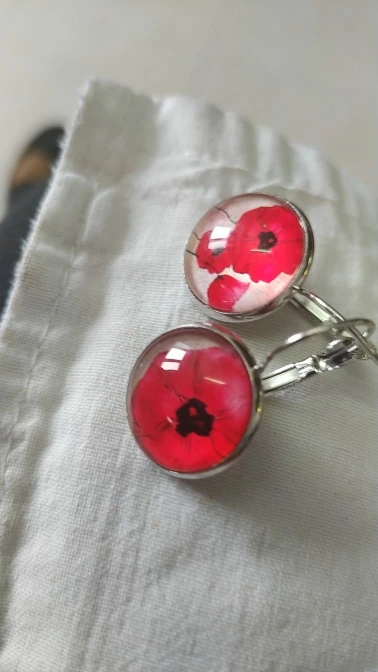 Pendientes colgantes de flores grandes y Rojo para mujer, joyería sencilla de amapolas, cabujón, cúpula redonda, hecha a mano, colorida
