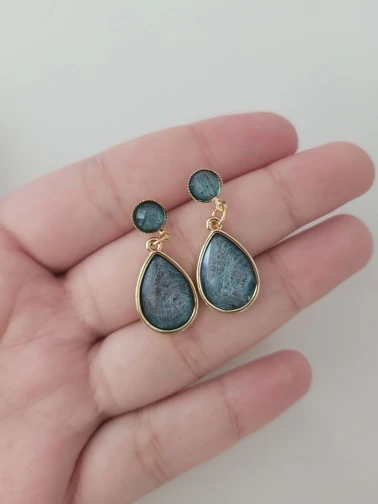 Pendientes con Clip de gota de agua geométricos para mujer, temperamento Simple japonés, piedra de cristal azul, sin Piercing, regalo para niña y mujer coreana