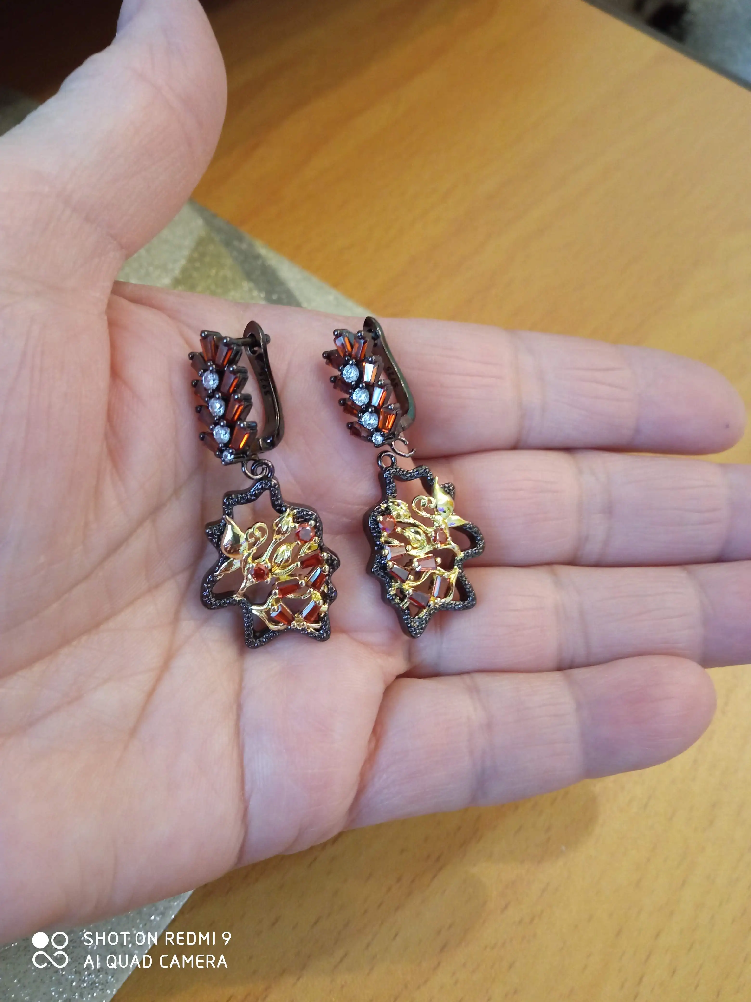 Pendientes de circonita con diseño Floral, joyería de lujo, color negro, dorado y rojo, de alta gama, 925
