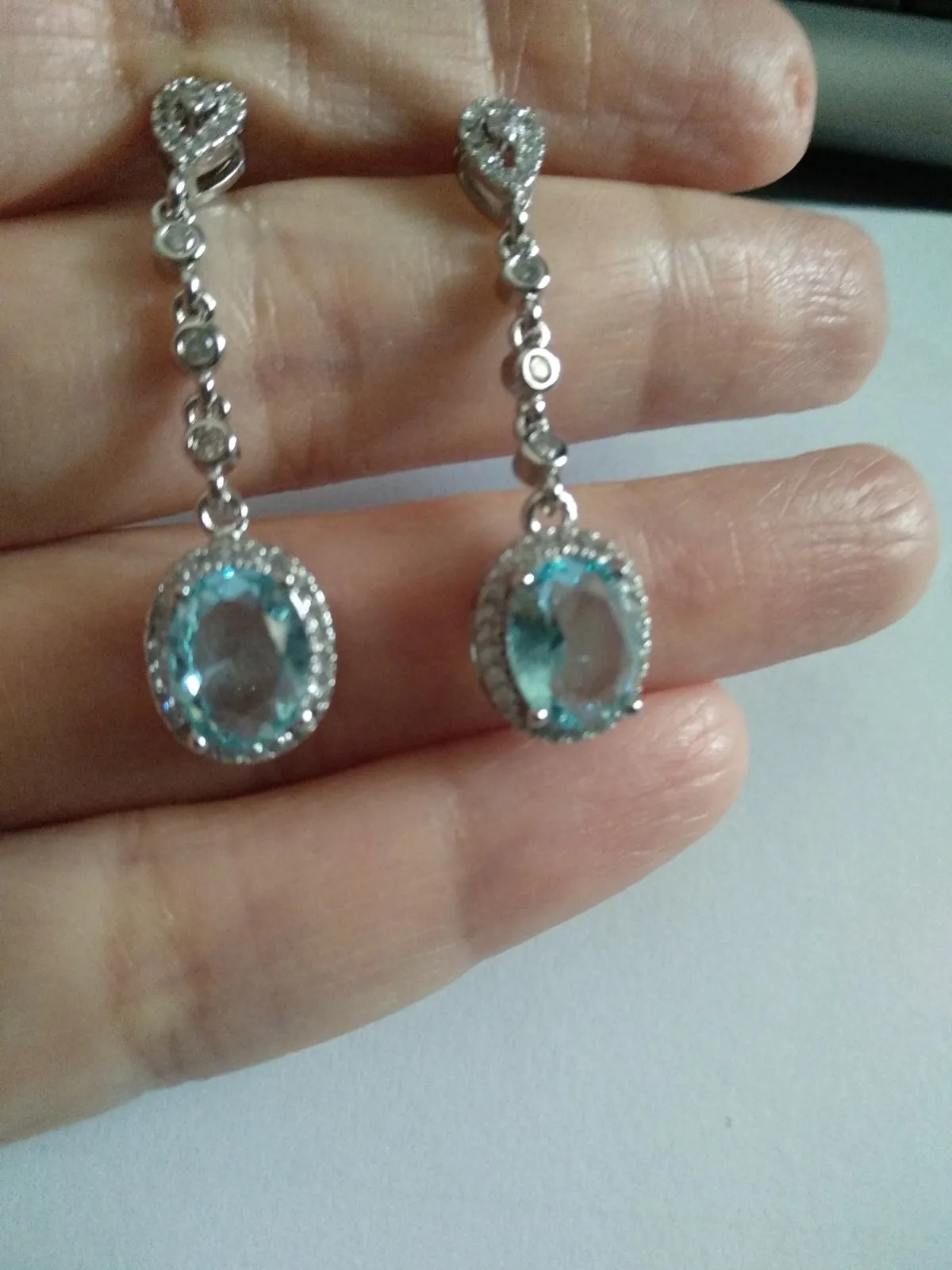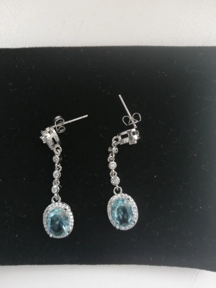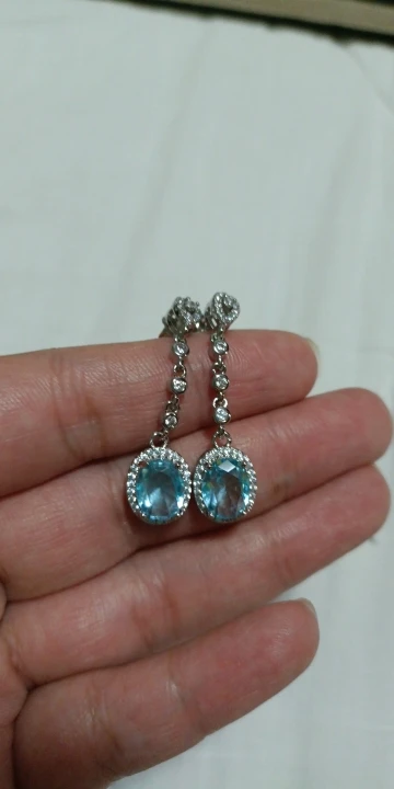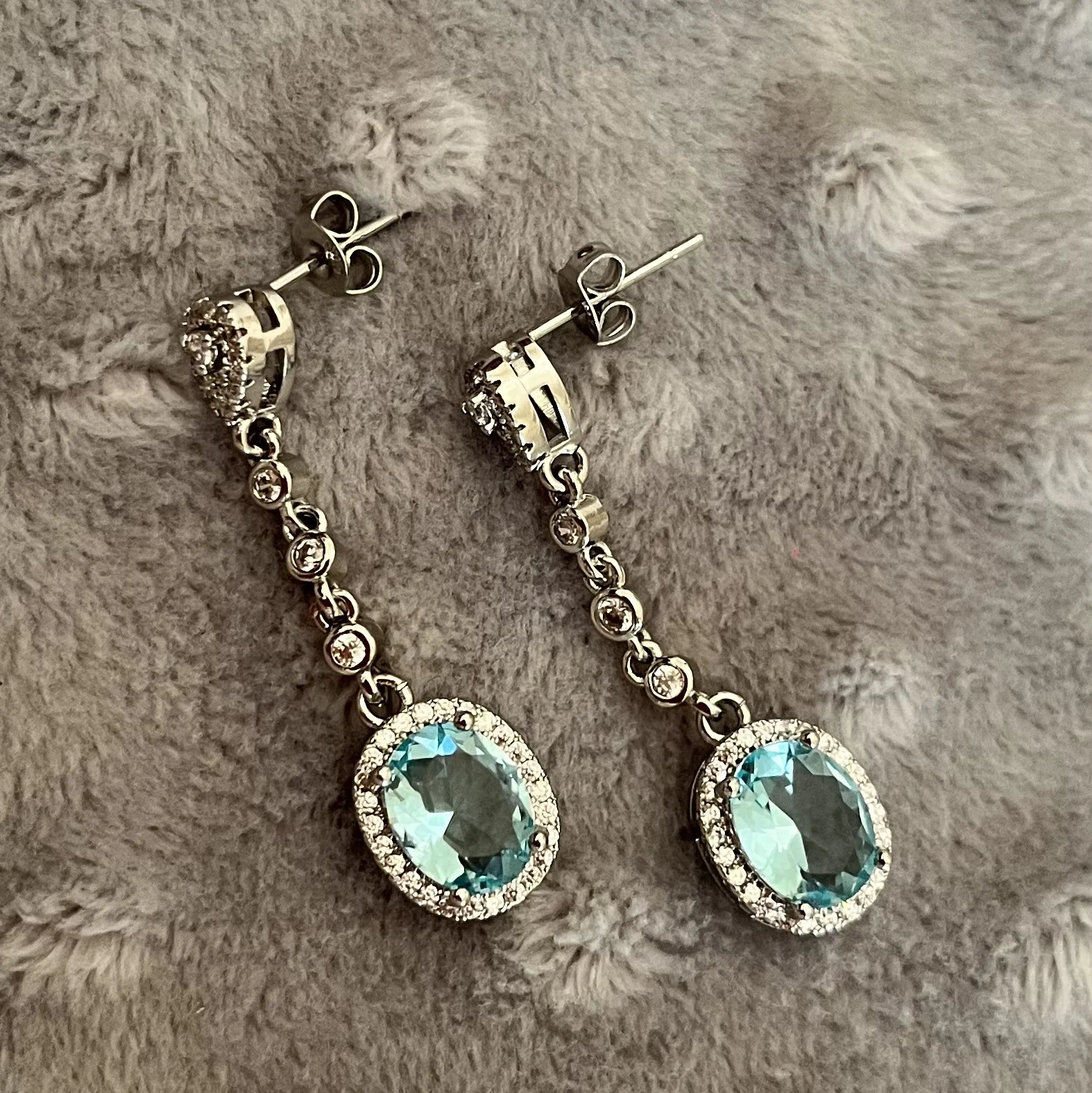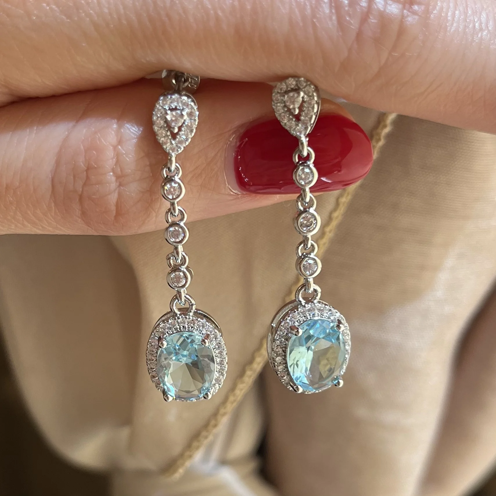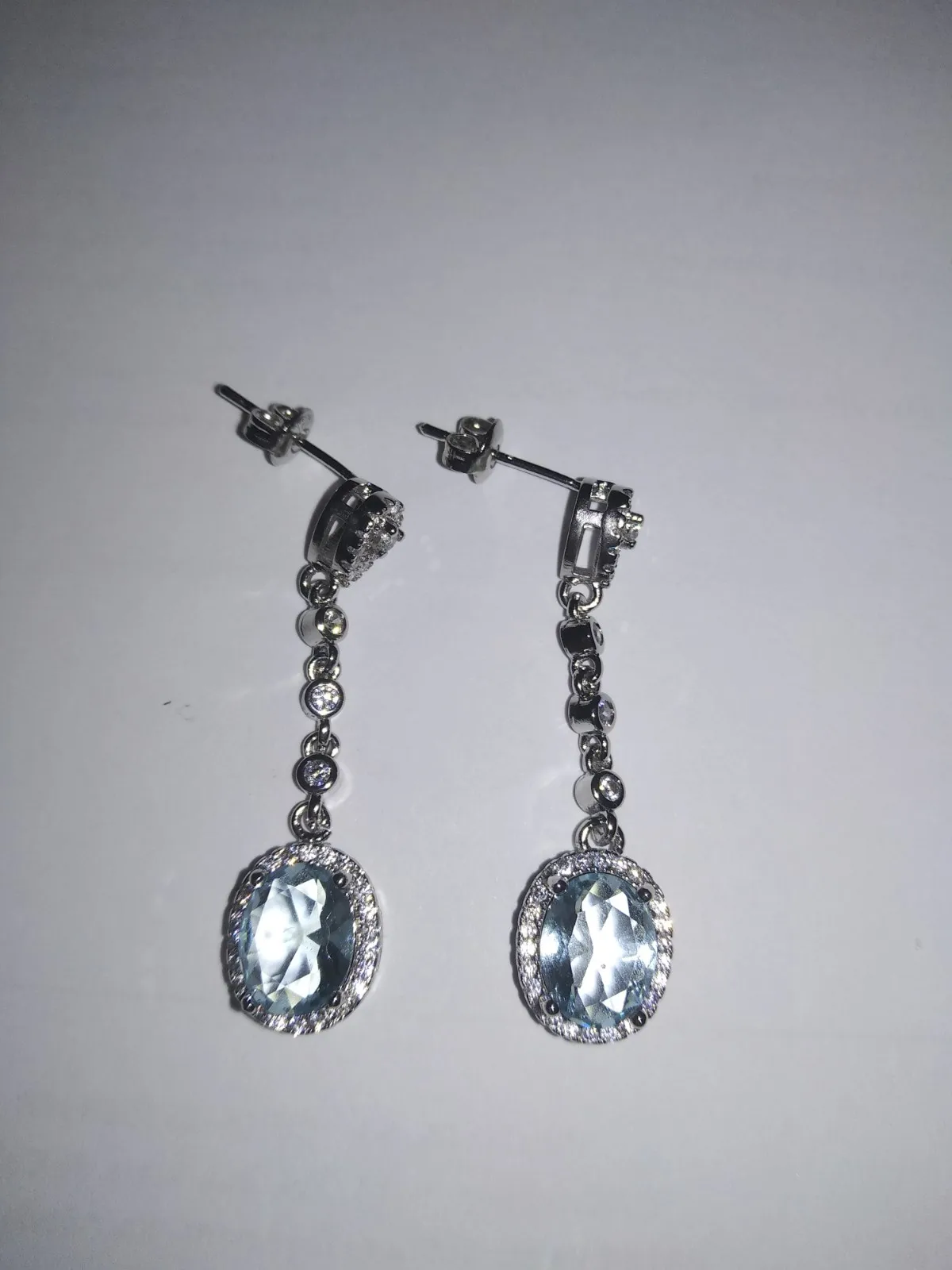 Pendientes de gota de cristal azul para mujer, aretes colgantes de circonia azul para mujer, aretes de boda ovalados para novia
