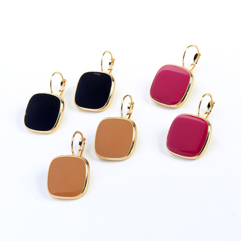 Pendientes de gota de esmalte cuadrado lindo Simple Color oro rosa para las mujeres joyería de moda al por mayor