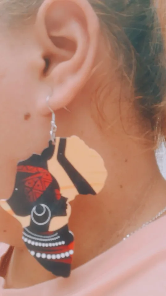 Pendientes de madera con diseño de mapa de África, joyería Afro africana para fiesta, Vintage, color negro