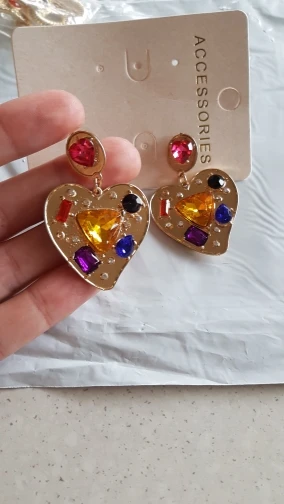 Pendientes de Metal con cristales coloridos en forma de corazón para mujer, aretes de gota de moda, accesorios de joyería para mujer