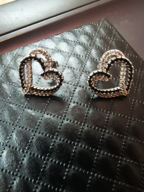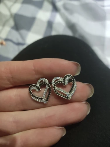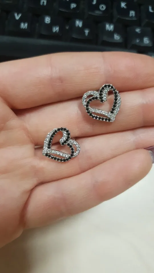 Pendientes de plata de primera ley con forma de corazón para mujer, aretes pequeños, plata esterlina 925, estilo romántico, color negro, I155