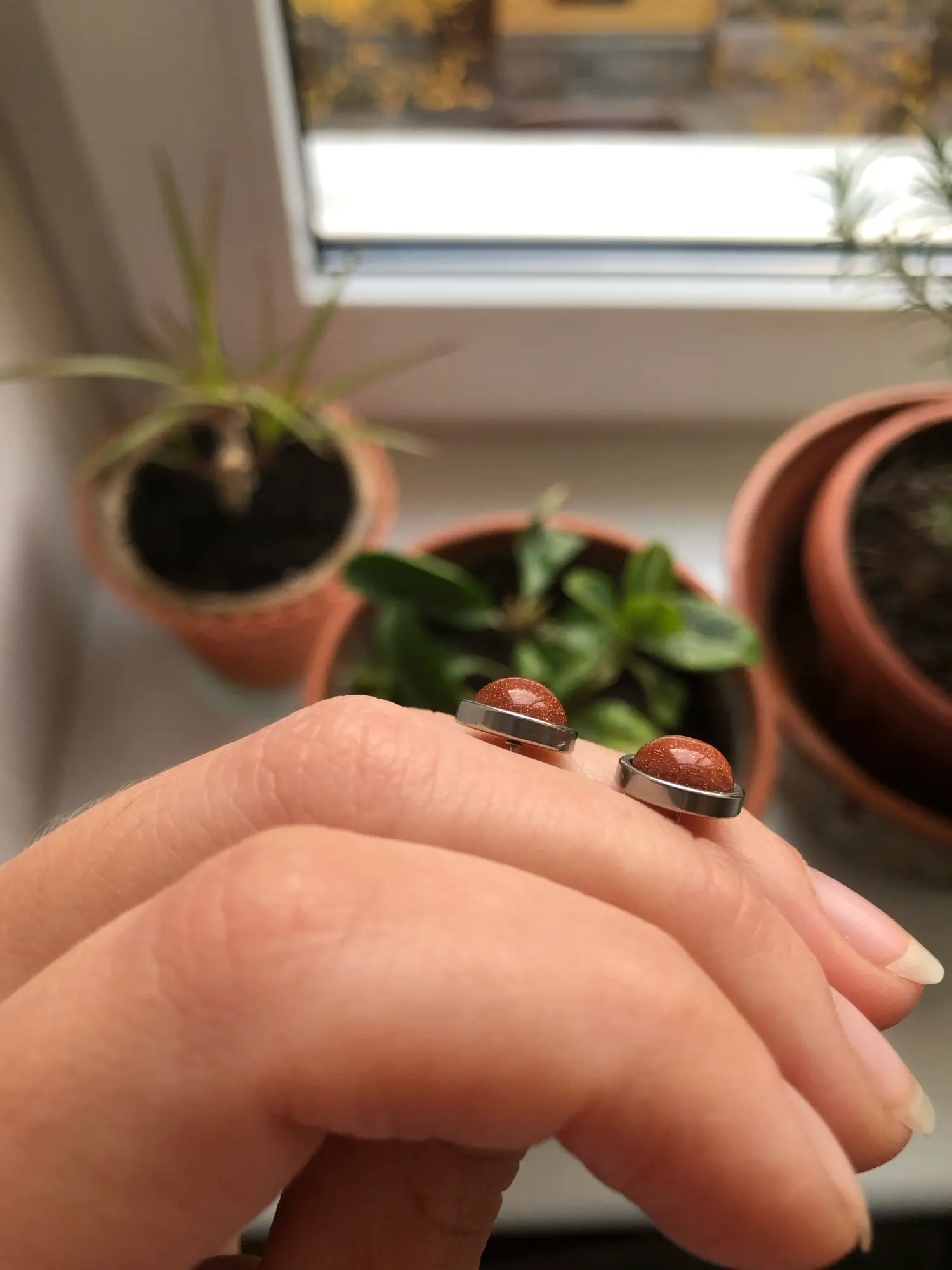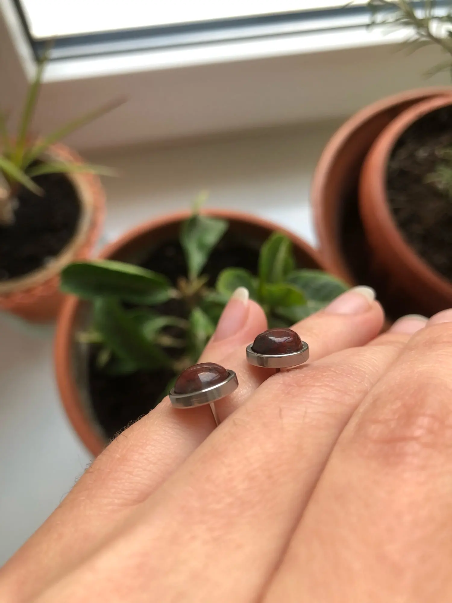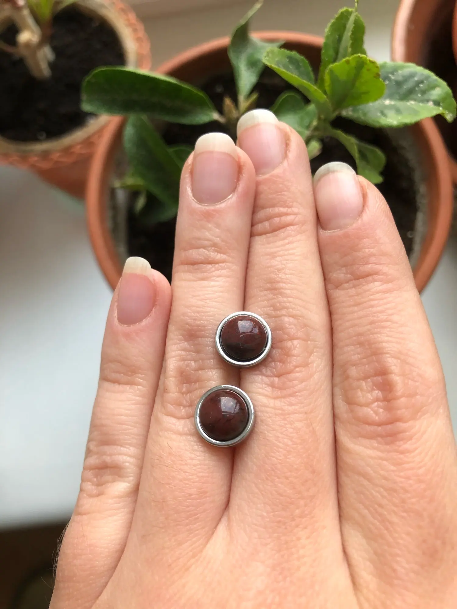 Pendientes de tuerca de acero inoxidable para mujer, 1 par, aretes redondos de cuentas de piedra Natural de 8mm, joyería para oreja para hombre (nunca se decolora)
