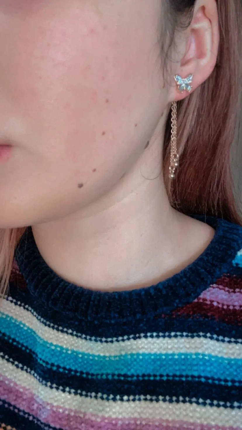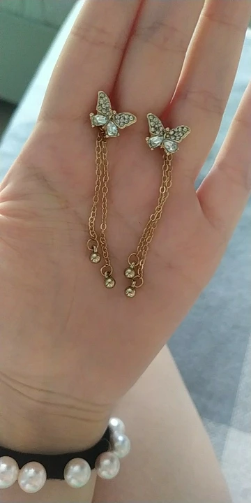 Pendientes largos con flecos y lazo para mujer, aretes con borlas delanteras y traseras con lazo de cristal, aretes de mariposa de temperamento largo para mujer