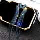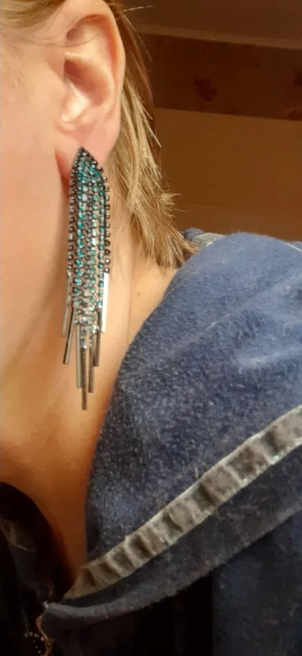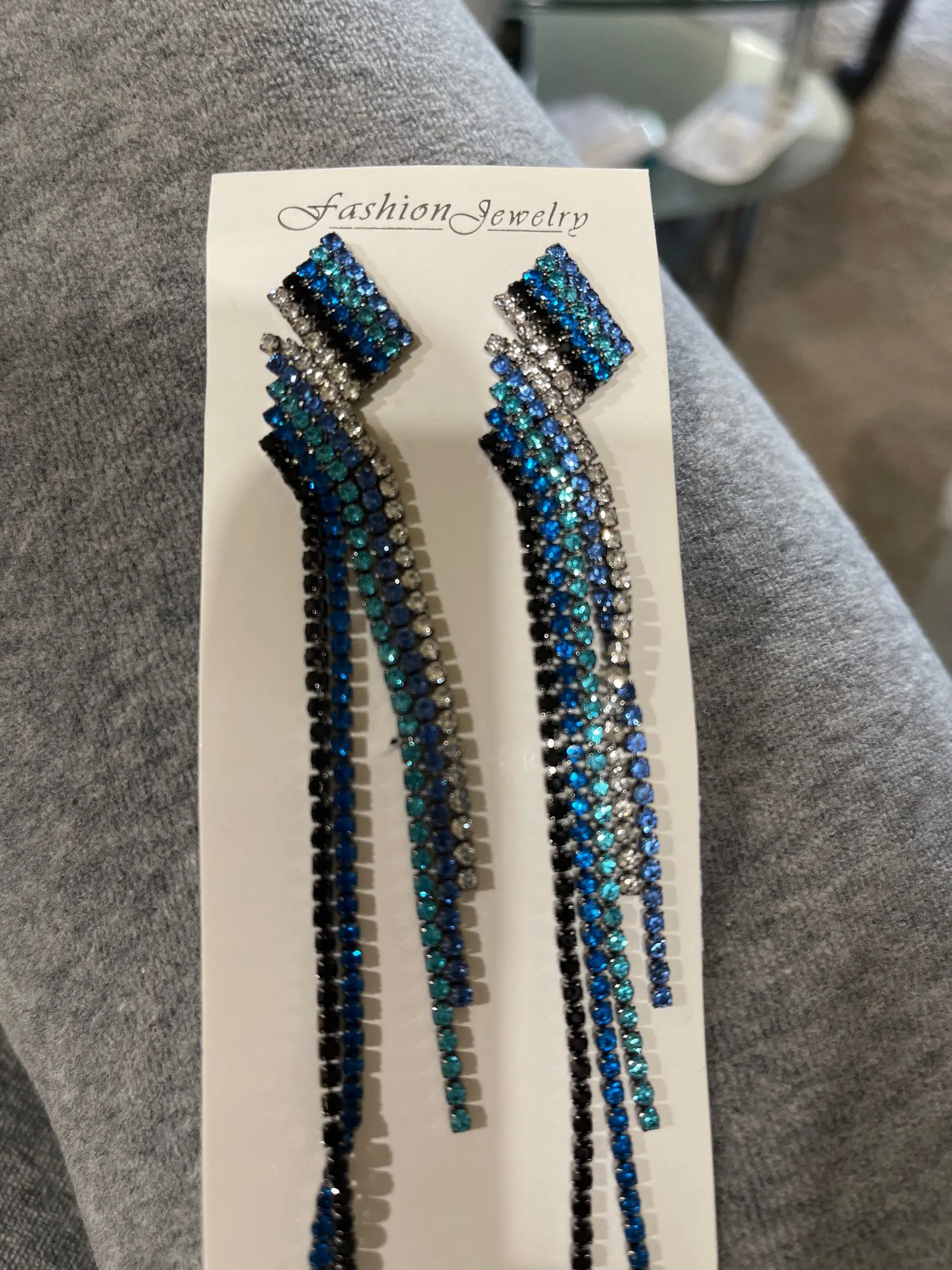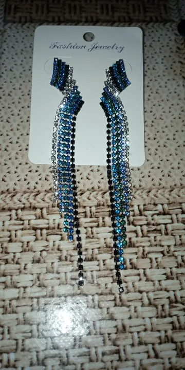 Pendientes largos de borla con diamantes de imitación para mujer, Color azul, con orejas geométricas, para boda, accesorios de joyería de compromiso, regalo