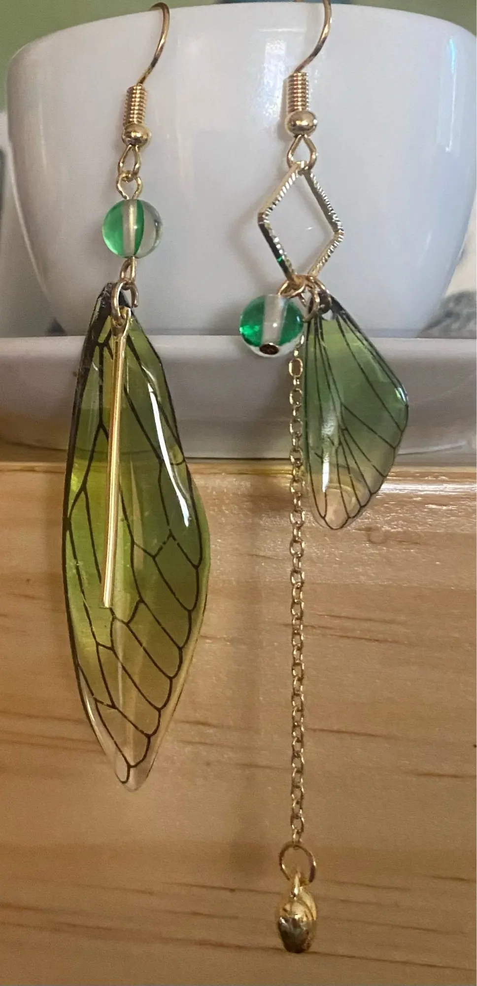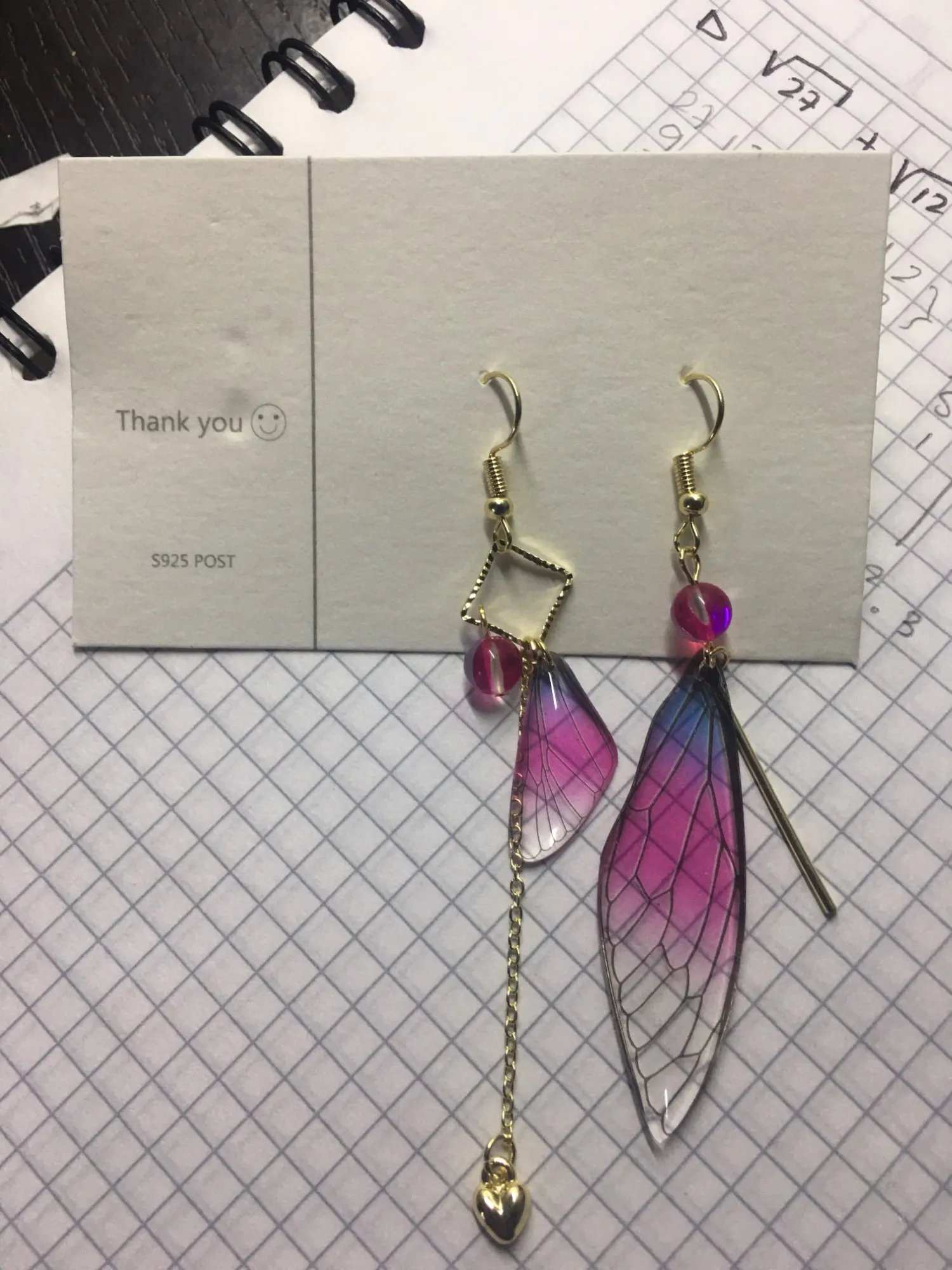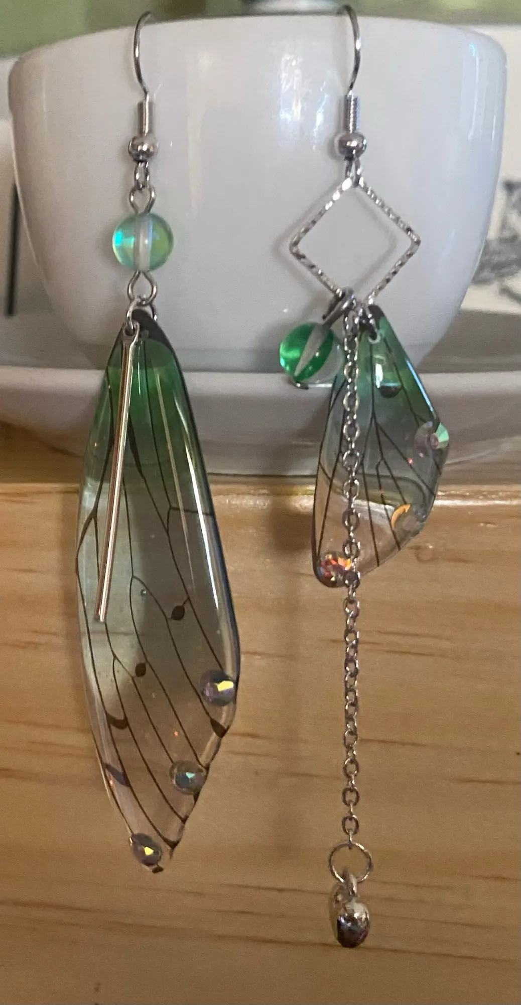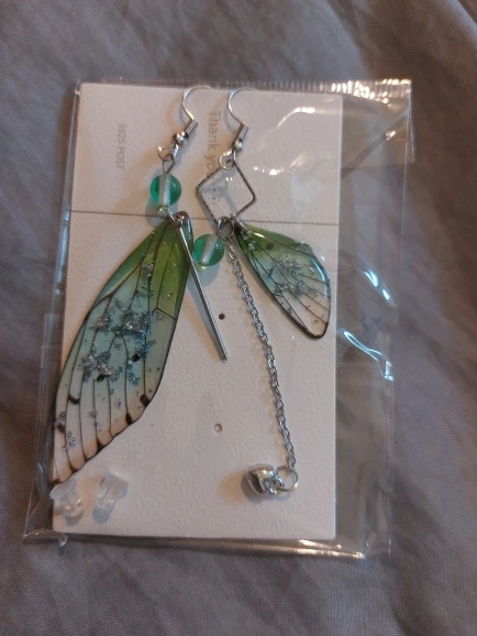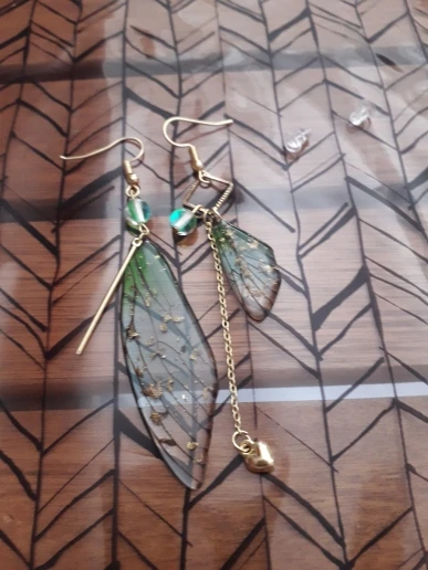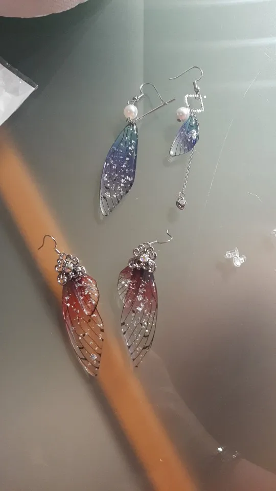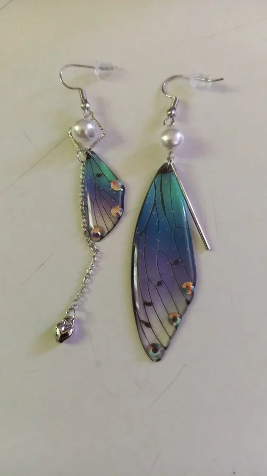 Pendientes largos de hada y mariposa con alas, joyería nupcial romántica asimétrica de Color degradado de ensueño