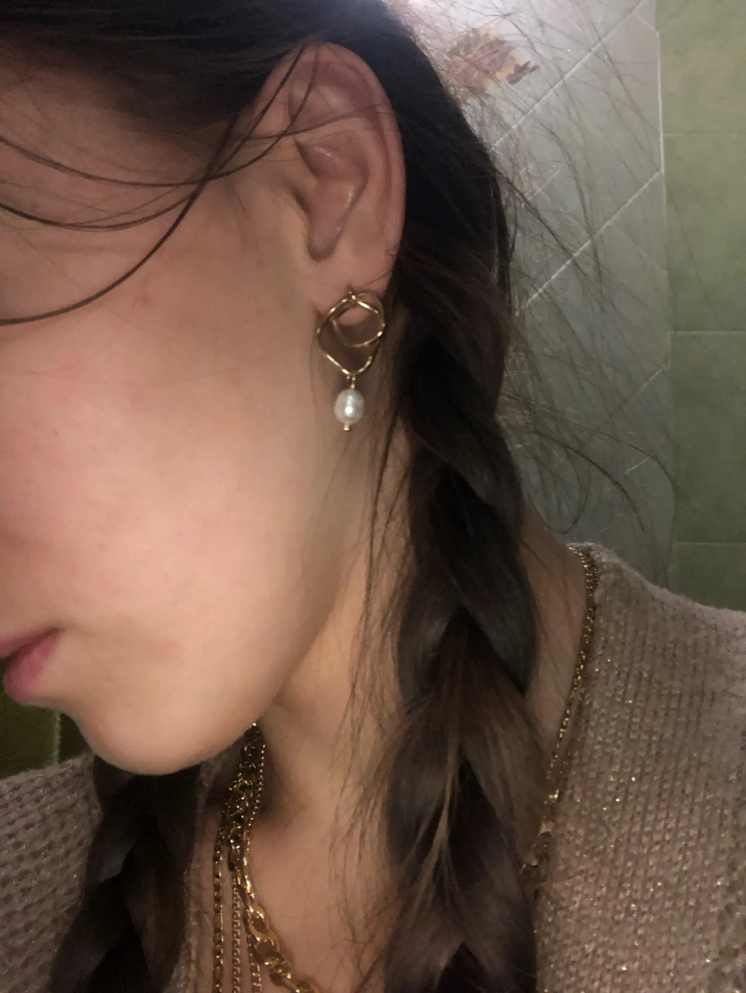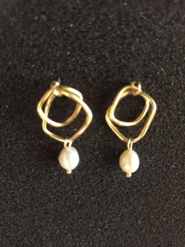 Pendientes Ms geométrico pendientes de perlas naturales de agua dulce, pendientes de moda mujer temperamento joker pendientes de perlas