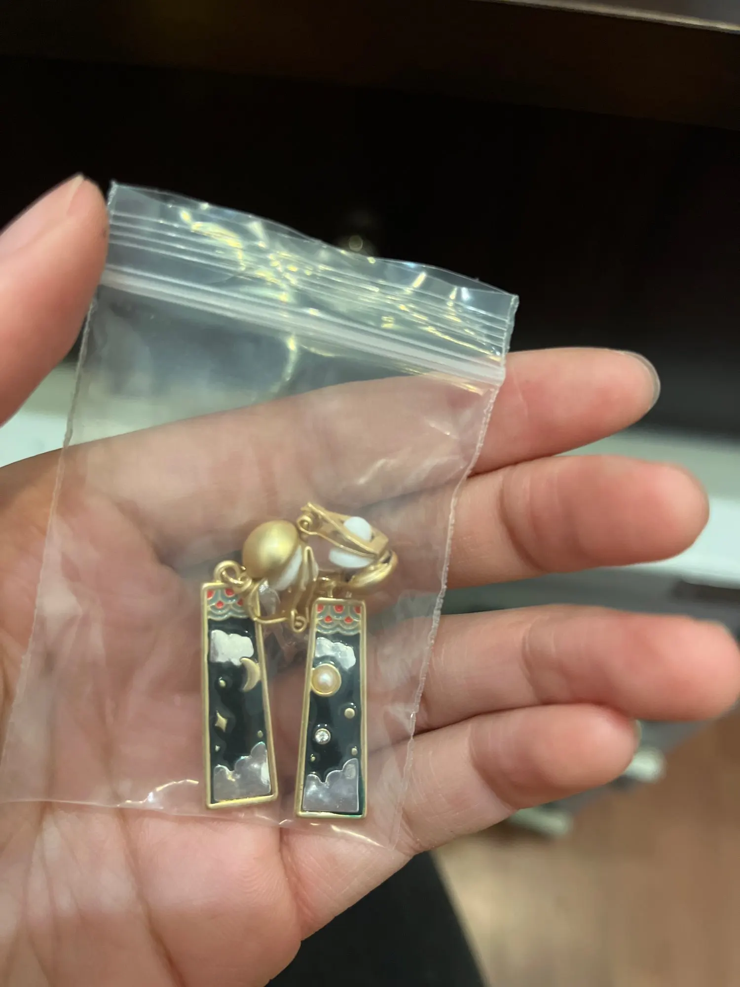 sun moon clip on Earrings