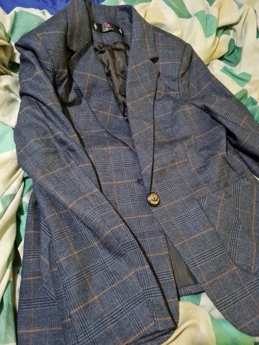 PEONFLY Vintage Casual, chaqueta de las mujeres de moda botón Oficina abrigo chaqueta mujer dentada Collar de manga larga chaqueta