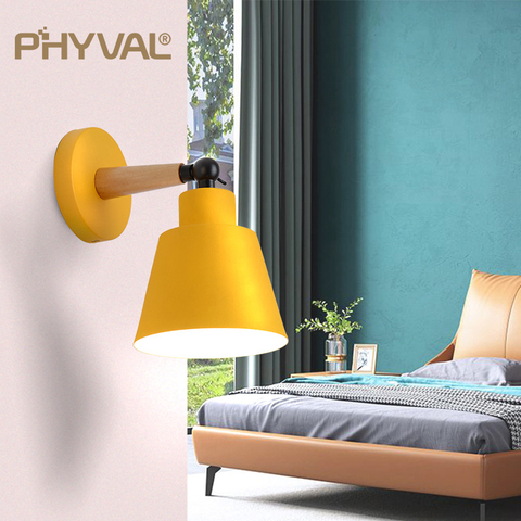 PHYVAL-Lámpara de madera para dormitorio, candelabro de pared con base colorida de hierro, moderno, para sala de estar, restaurante, accesorios de iluminación
