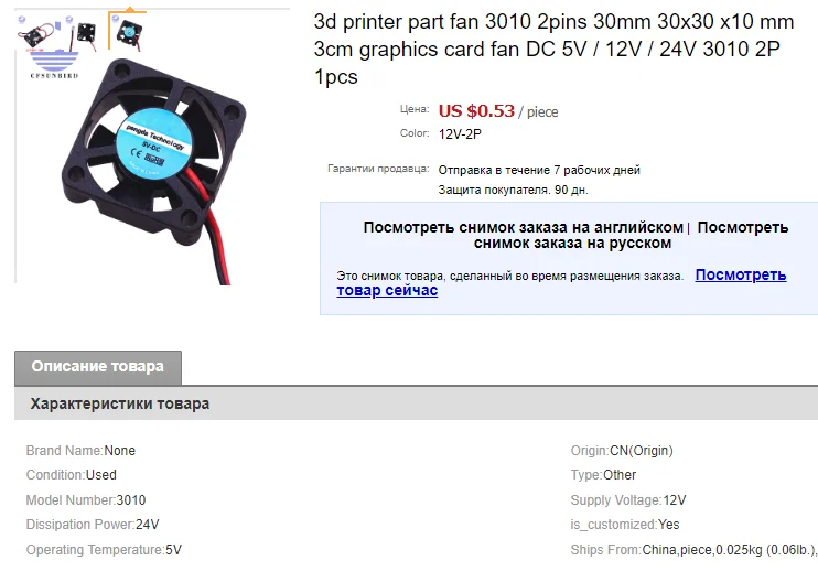 Pieza de impresora 3d ventilador 3010, 2 pines, 30mm, 30x30x10mm, 3cm, ventilador para tarjeta gráfica DC 5V / 12V / 24V 3010 2P 1 Uds.