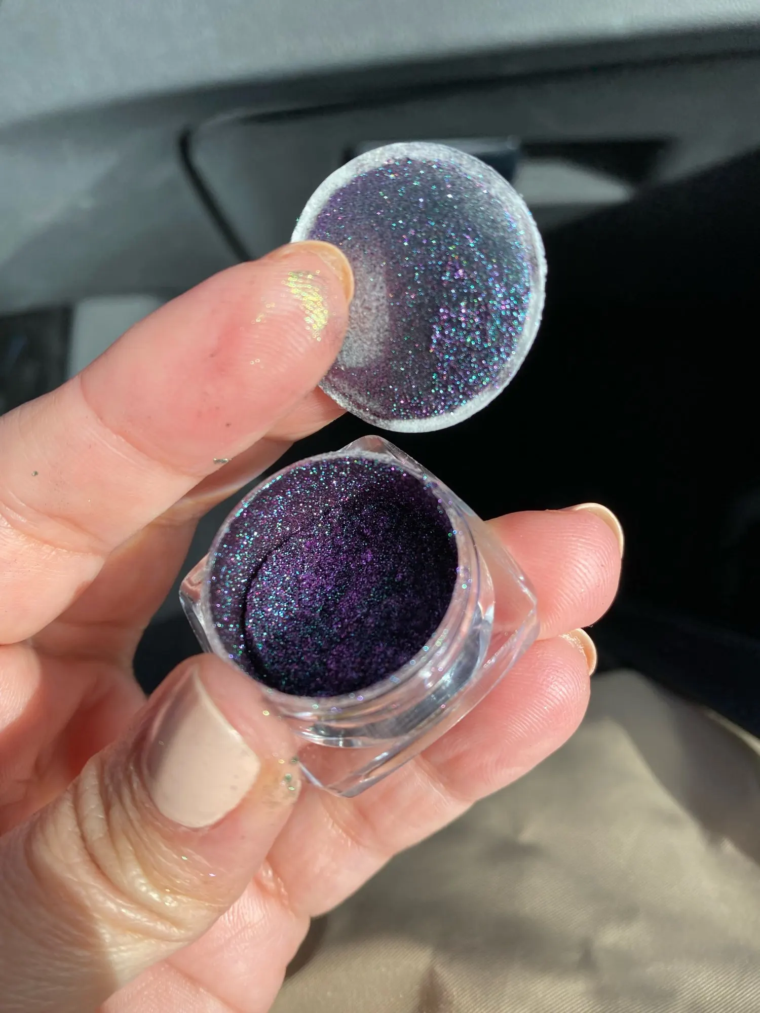 La cantidad de producto equivaldría a lo que lleva cualquier sombra en pastilla que vienen en las paletas. Solo que este polvo no viene prensado.