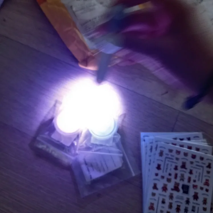 El brillo aguanta poco, necesita mucha luz para brillar en blanco, cuando se va agotando brilla en azul y con destellos naranjas