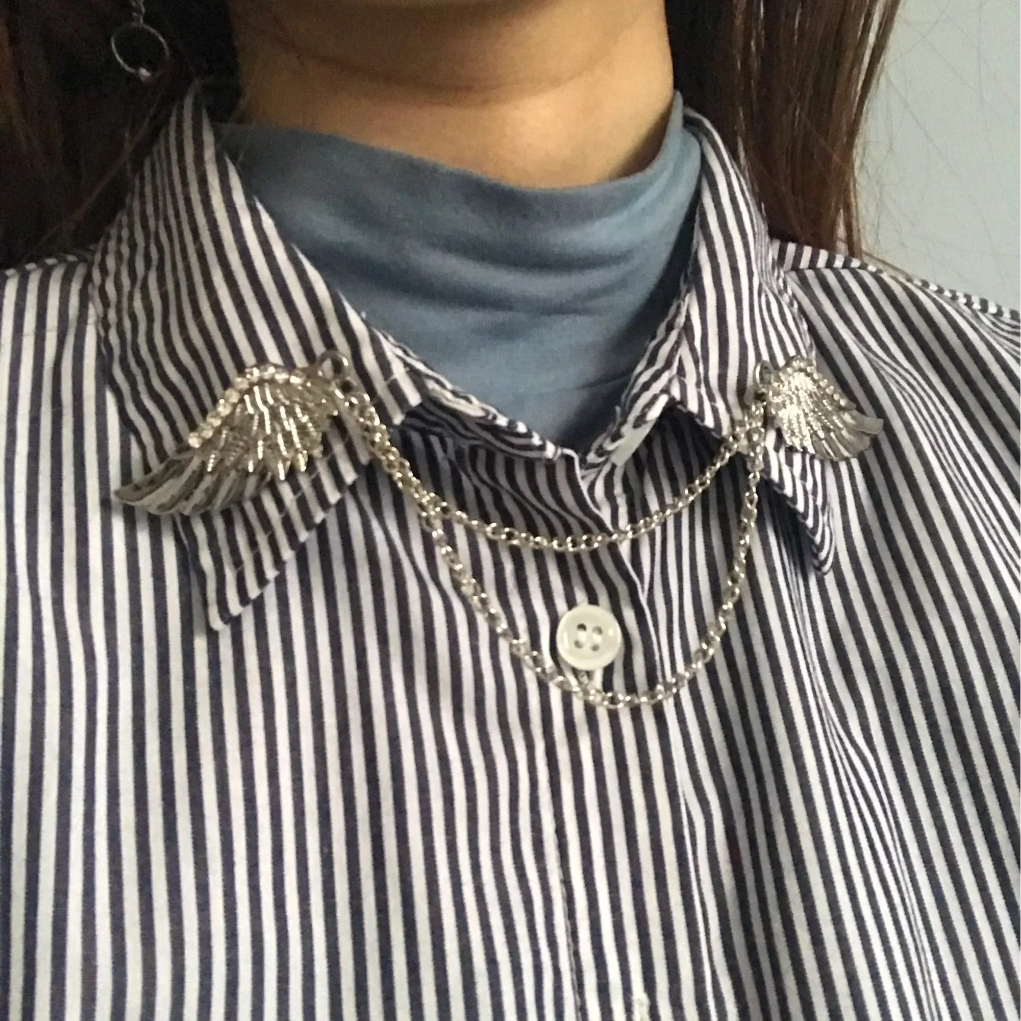 Pin de alas de Ángel de cristal Vintage para hombre y mujer, Pin de cadena de Metal para camisa, Collar, solapa, accesorios de joyería