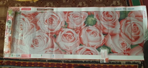Pintura de diamantes de imitación, 128x48cm, rosa, patrón, pintura decorativa, Mosaico hecho a mano de diamantes de imitación, flores, bordado de diamantes artesanal
