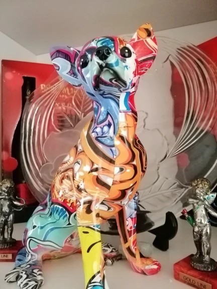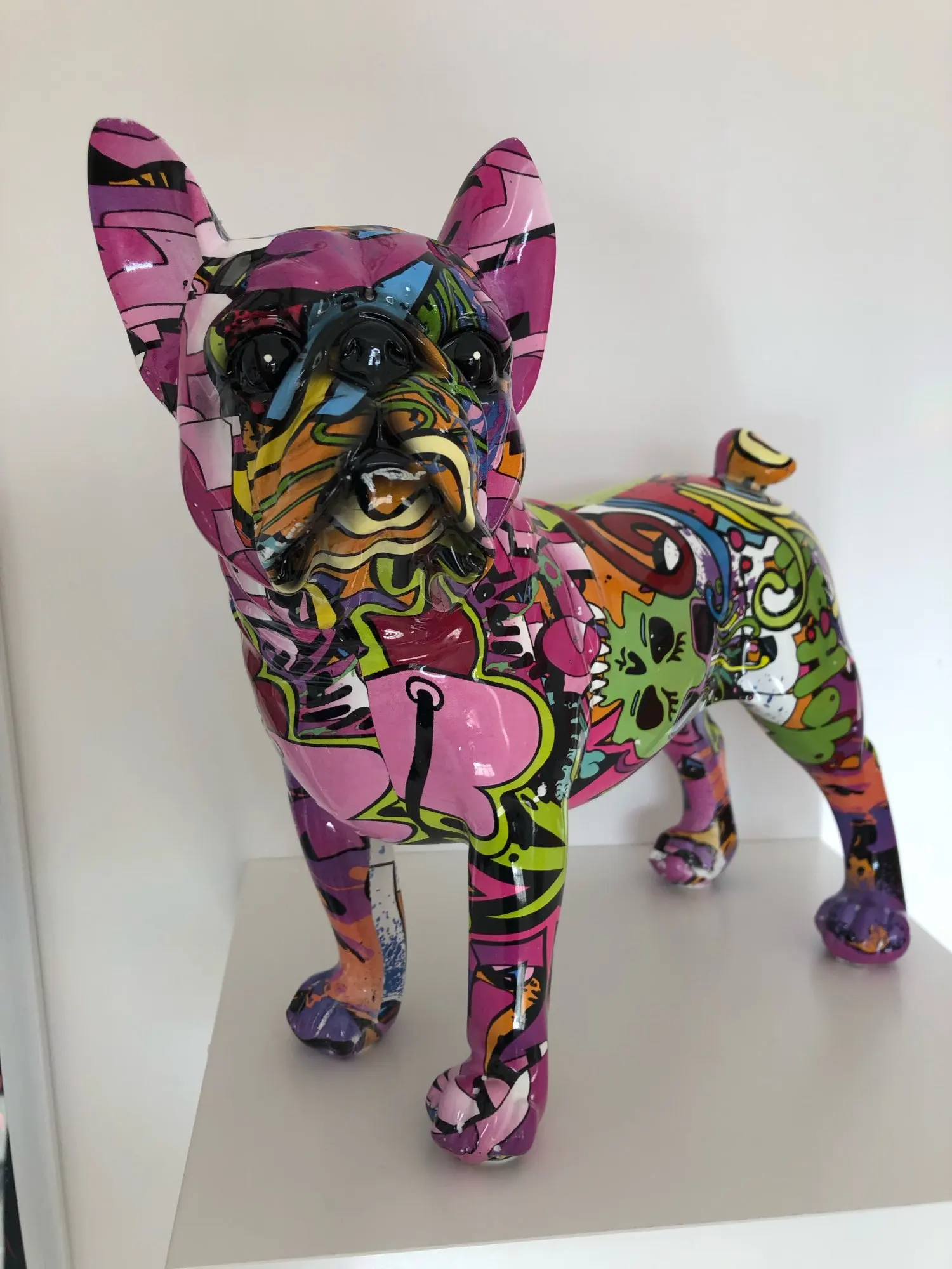 Pintura nórdica grafiti L/S Bulldog Francés, artesanía de resina creativa, vino de decoración, armario, oficina, artesanía de resina