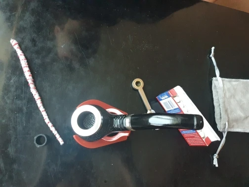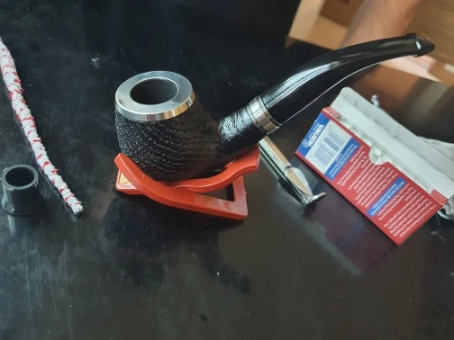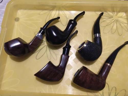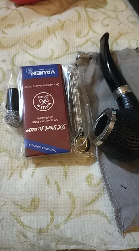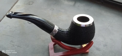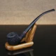 Pipa de madera de roble natural hecha a mano para fumar tabaco, bol con anillo de madera curvada, tubo + bolsa + soporte + filtros de tubería de 9mm XB506, 16 herramientas