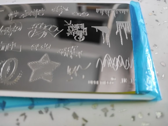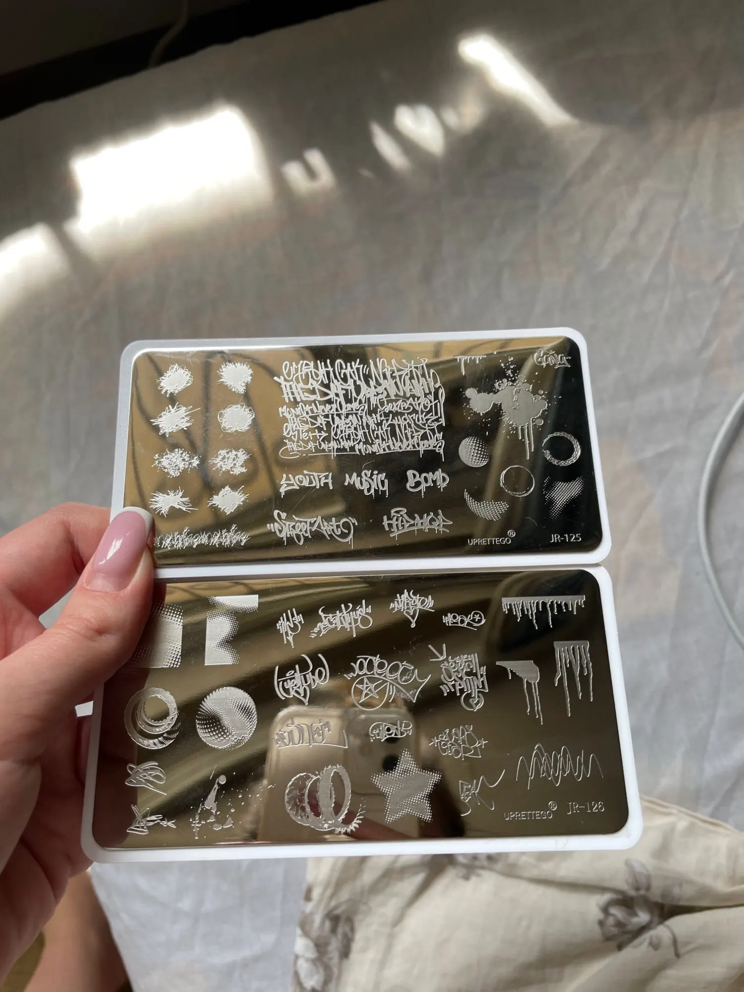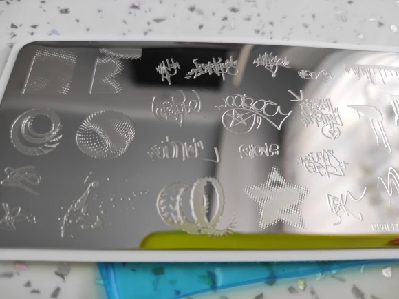 Plantilla Placa de estampado de acero inoxidable 2022, fuente de vidrio roto, grafiti, frase rusa, Mandala, Kawaii, herramienta para uñas, JR121-130