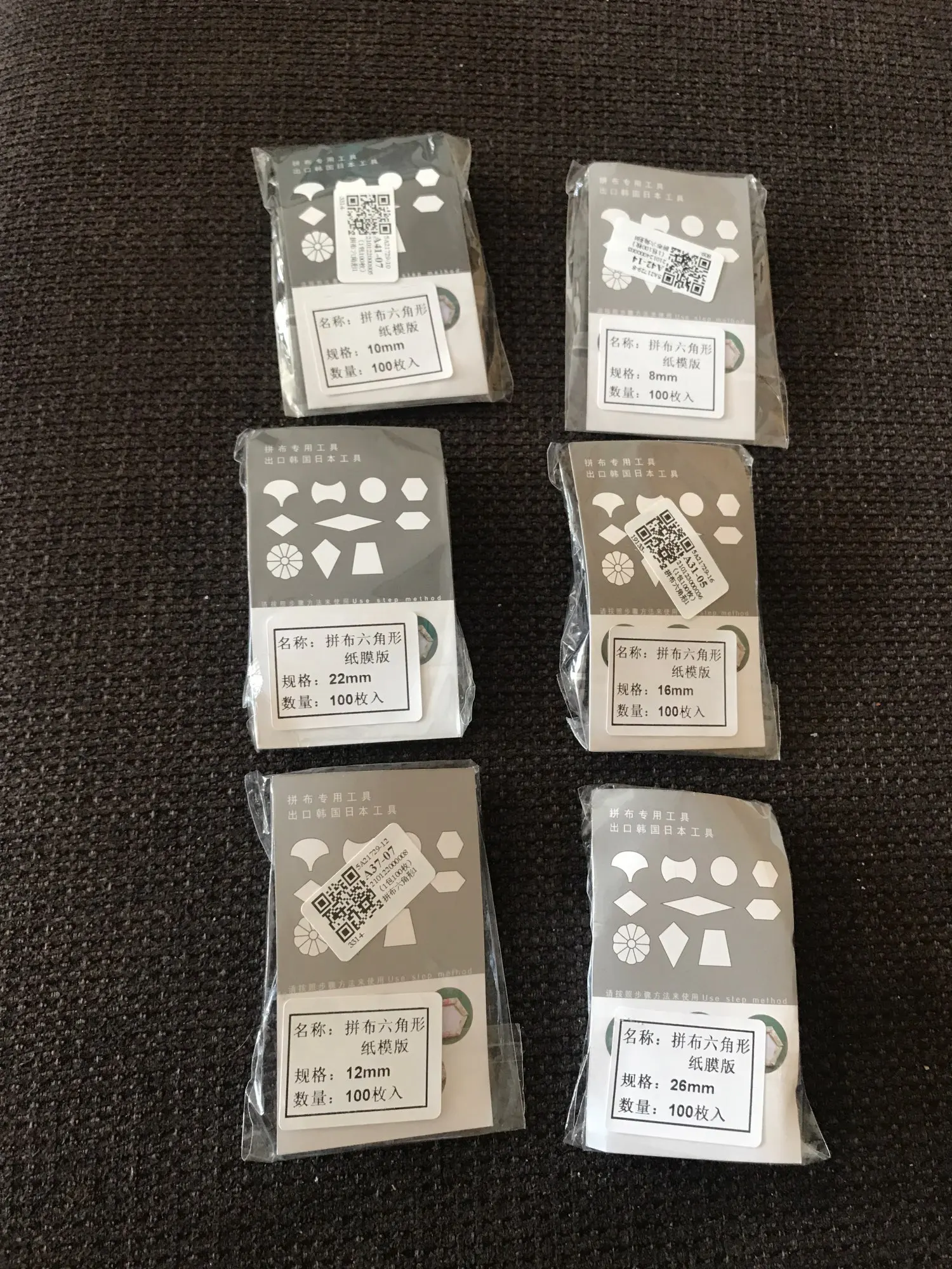 Plantillas hexagonales para Patchwork, 100 Uds., papel acolchado, costura artesanal, seis tamaños, B85C
