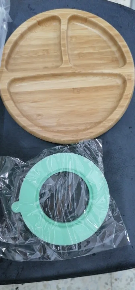 Plato de cena para bebé, tazón de alimentación de bebé, vajilla de alimentación de madera para niños con ventosa de silicona, tenedor de madera, cuchara, platos para niños