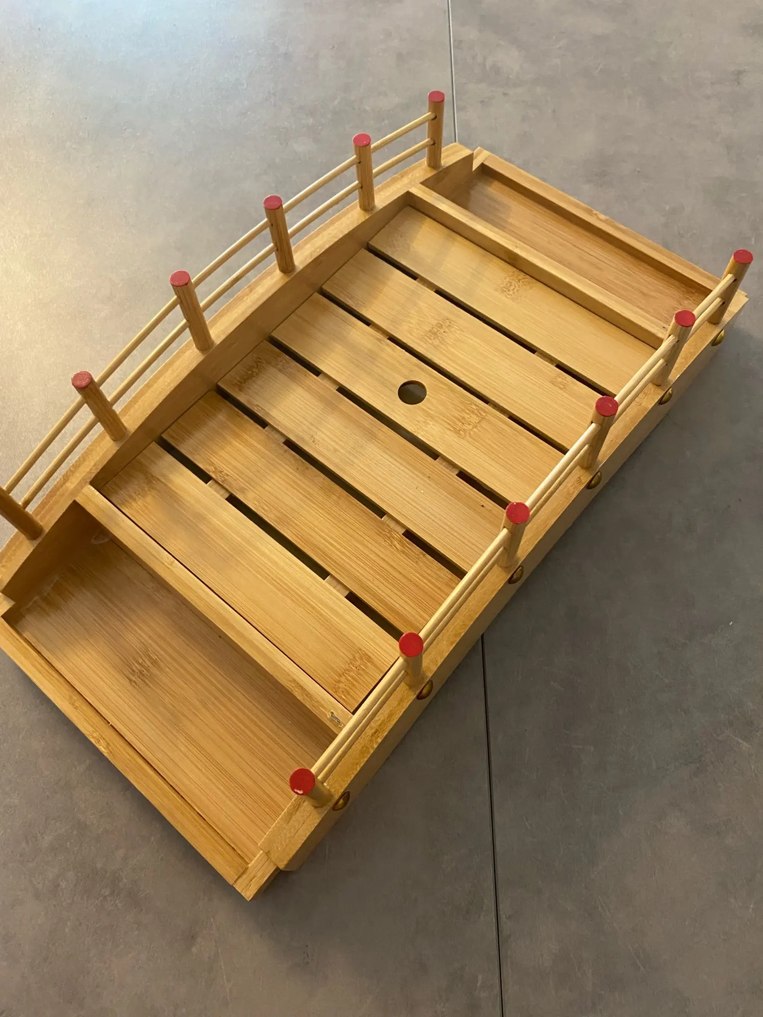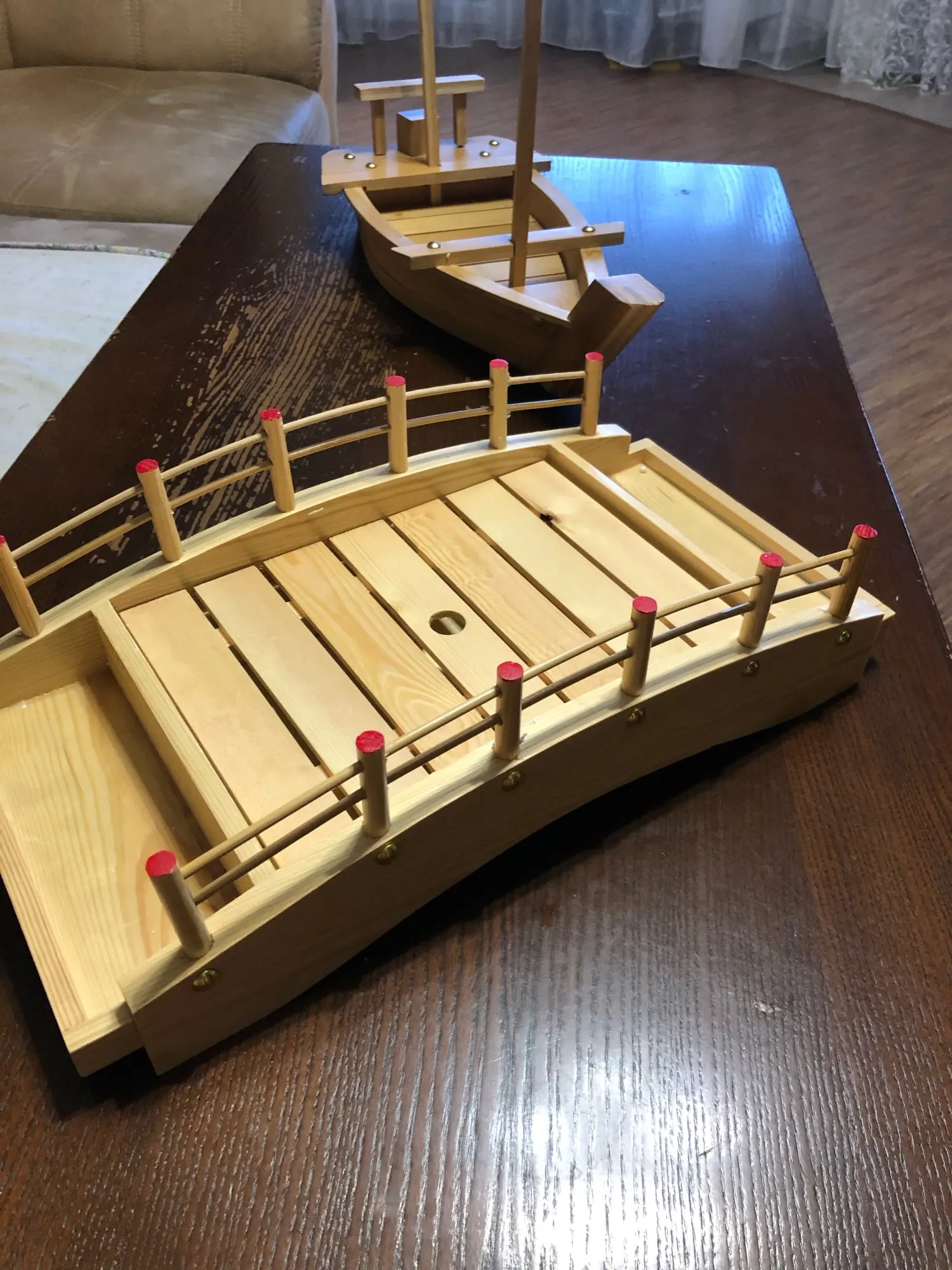 Plato de madera japonés para Sushi, decoración de servicio de mesa, puente, barcos, pino, Sushi creativo plato de Sashimi