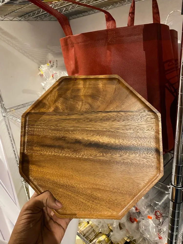 Platos creativos de madera de Acacia, bandeja octogonal rectangular para comida, postre, té, vajilla de cocina, vajilla para exteriores