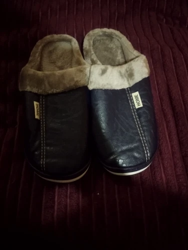Pmoiste invierno de las mujeres Zapatillas de casa de cuero impermeable antideslizante mujer Zapatillas de hombre de peluche de felpa zapatillas calientes de Interior para las mujeres